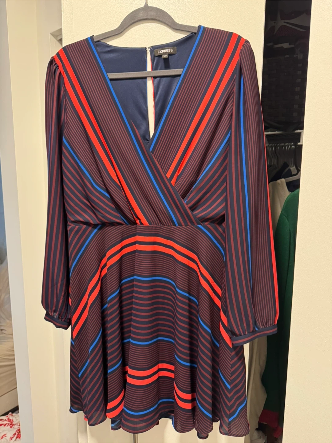 This is a beautiful striped dress/tunic from Express! It features a flattering v-neck and long sleeves. The dress is in great condition and ready for a new home!