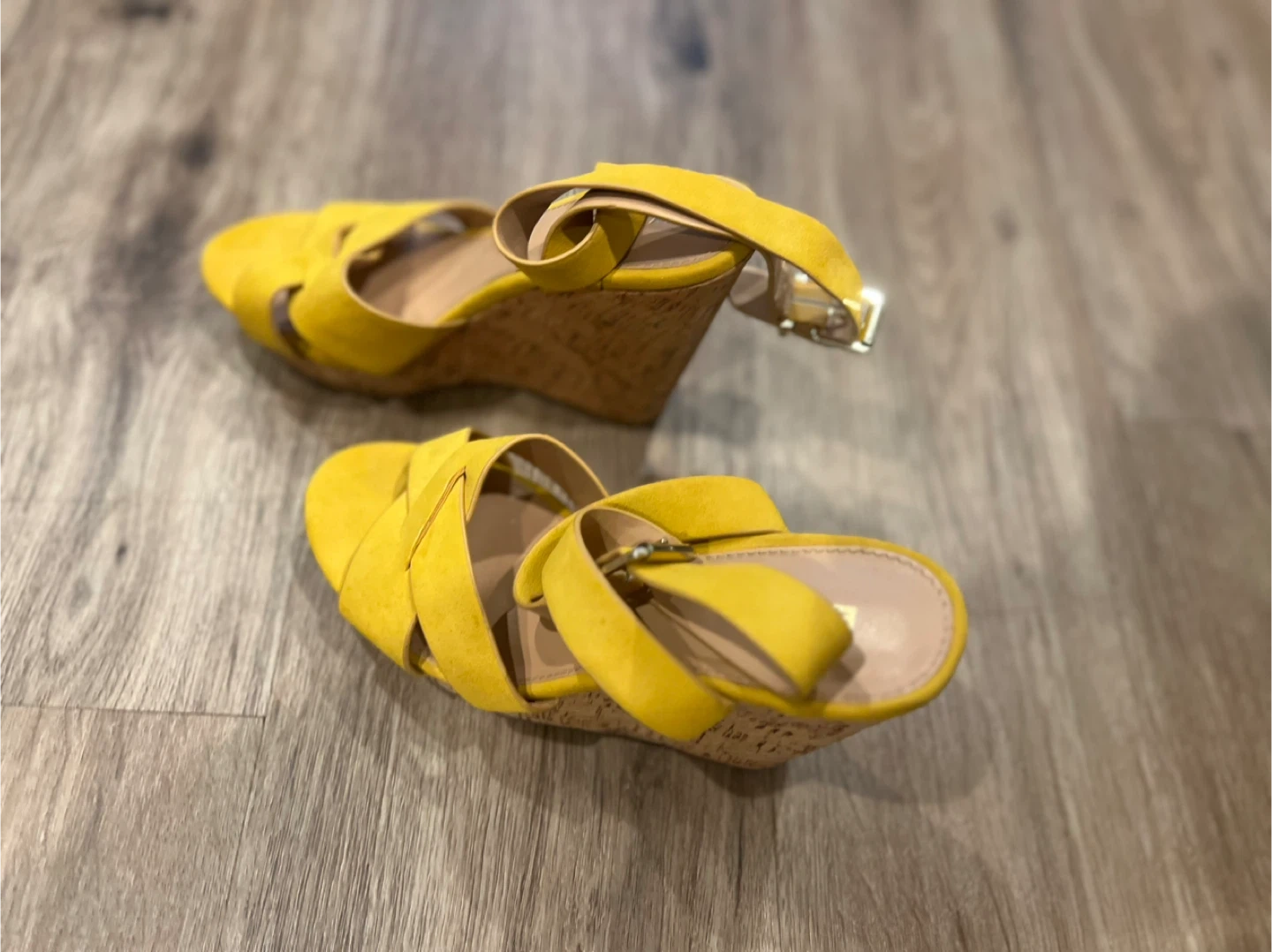 10These cute yellow wedge sandals from Express are perfect for adding a pop of color to your outfit! They feature a comfortable wedge heel and adjustable ankle strap.