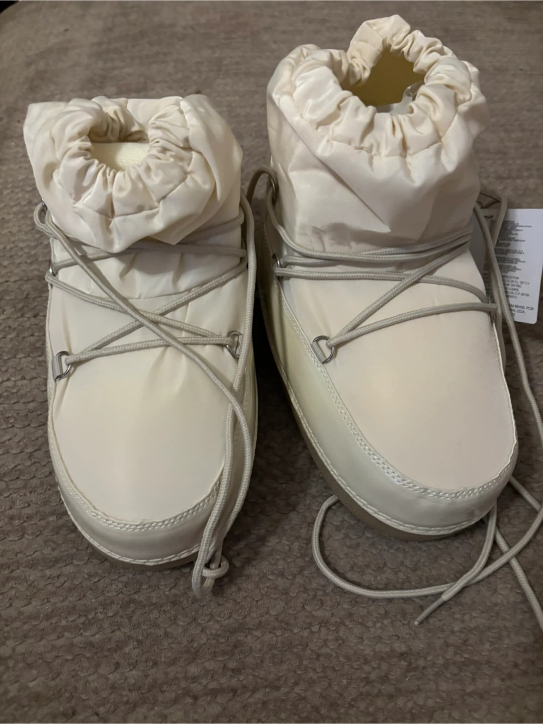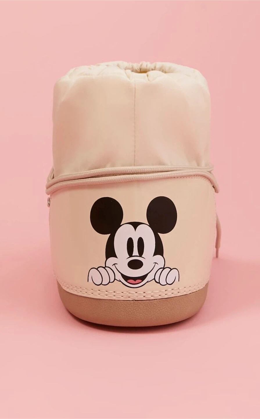 Super cute Disney-themed moon boots featuring Mickey and Minnie Mouse! These boots are perfect for adding a touch of fun to your winter wardrobe. From our Disney x Forever 21 collection, this pair of booties features an ankle length, round toe, lace-up design, and back Mickey and Minnie Mouse graphics.