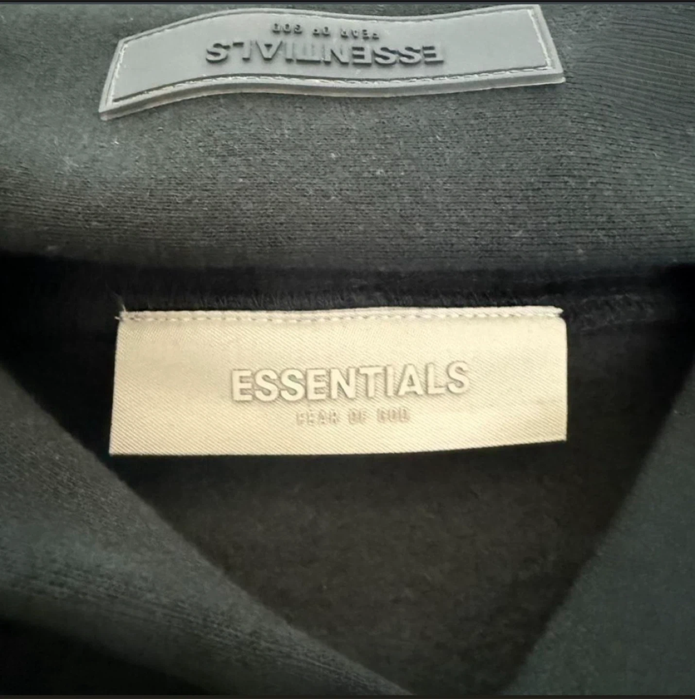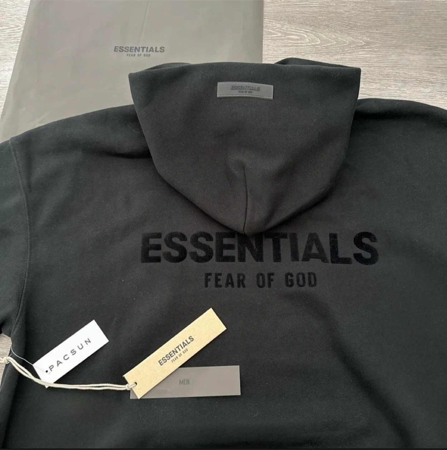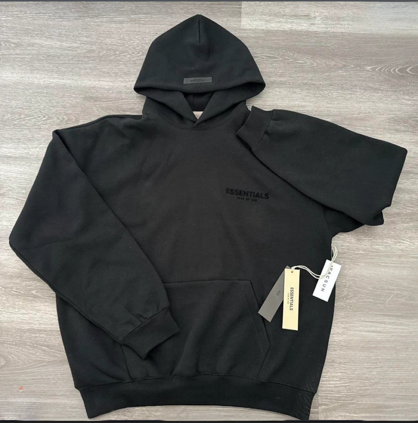 Black Fear of God Essentials hoodie. Cotton blend material. Includes original tags and packaging bag. Men's size medium.