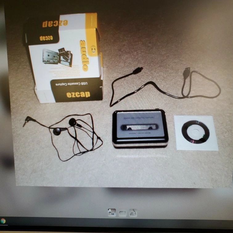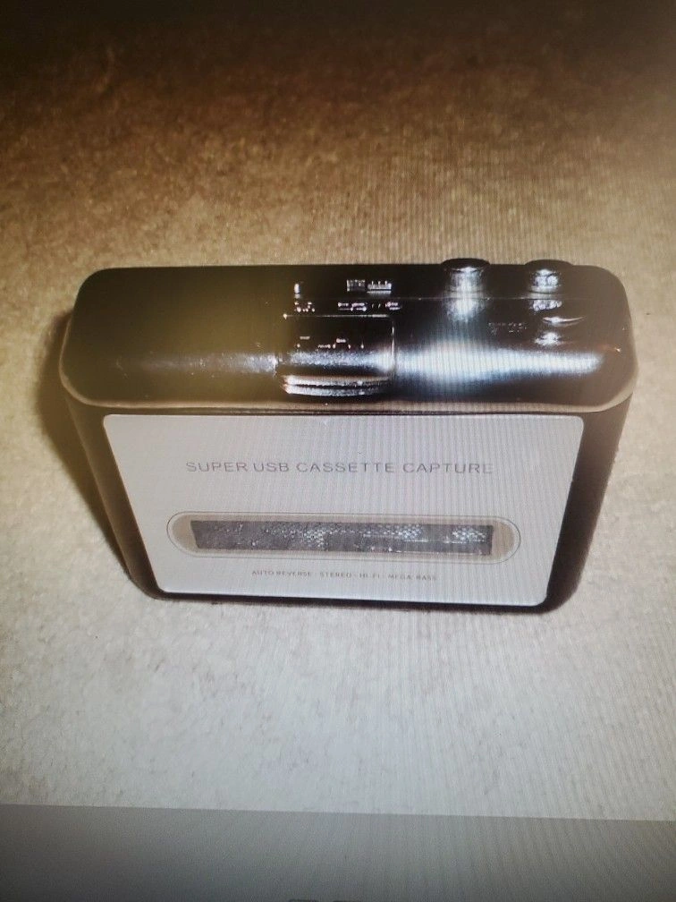 Cassette player-cassette tape to mp3 converter powered by battery or USB. Compatible with laptop and pc, USB cable, software CD, 3.5 mm jack earphone.