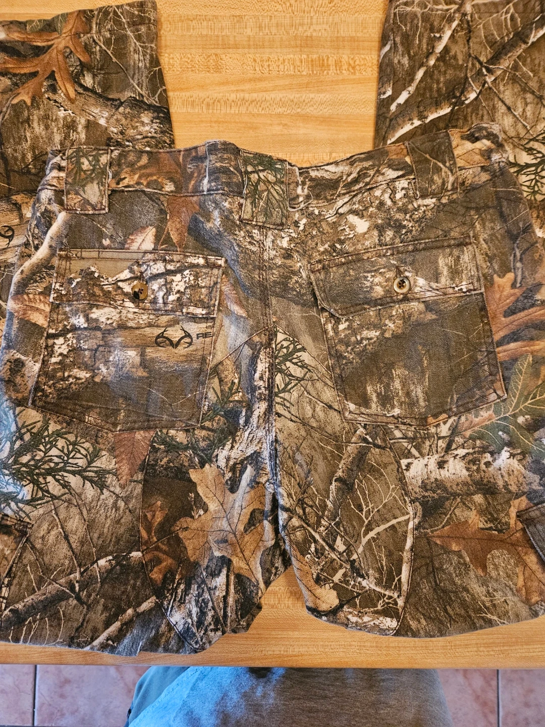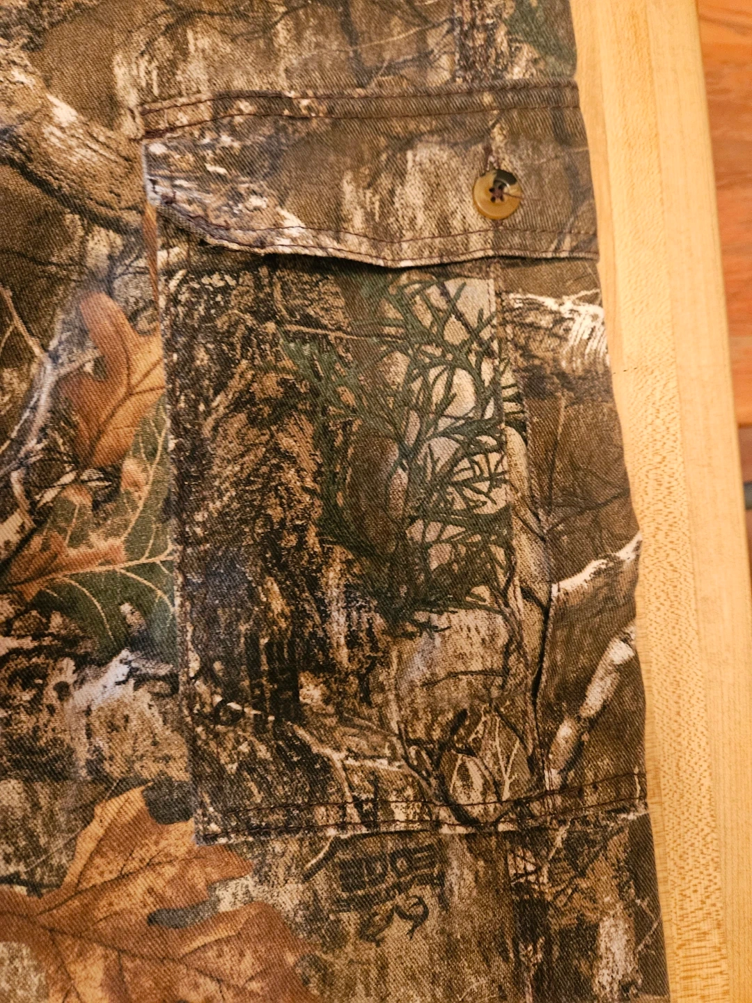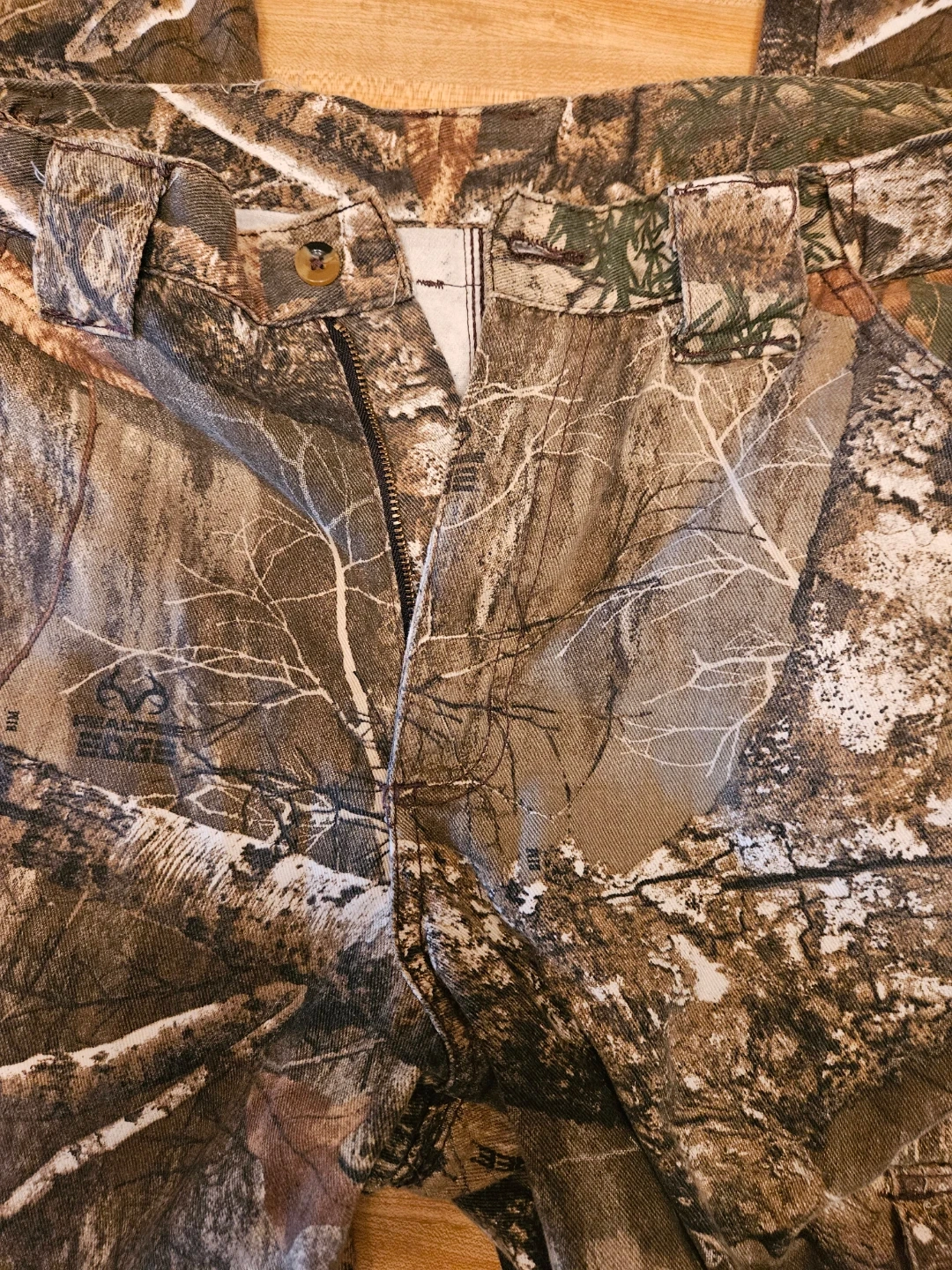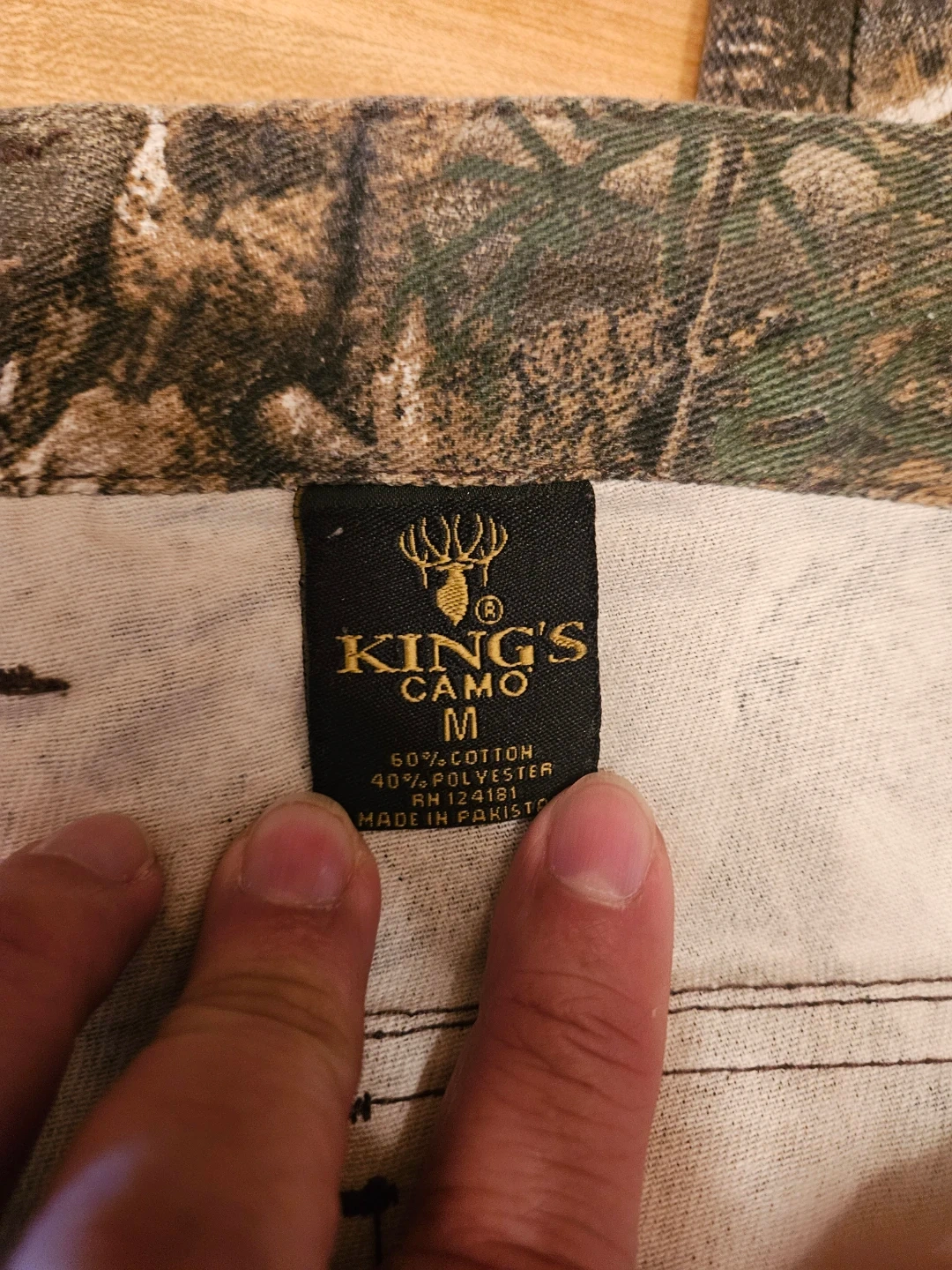 These King's Camo pants feature a classic Realtree camouflage pattern. They're made with a blend of 60% cotton and 40% polyester. Size is medium. Machine wash warm with like colors on a gentle cycle.