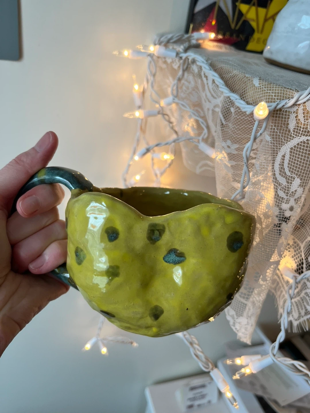 Handmade Yellow Ceramic Mug with Blue Speckles