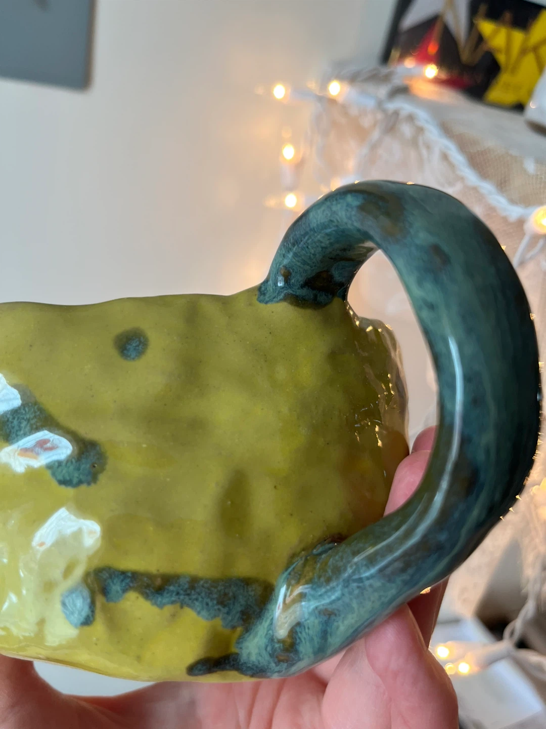 Handmade Yellow Ceramic Mug with Blue Speckles