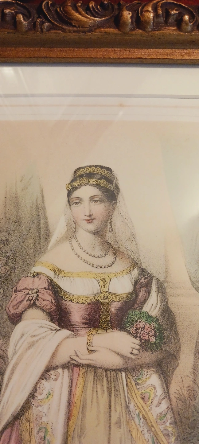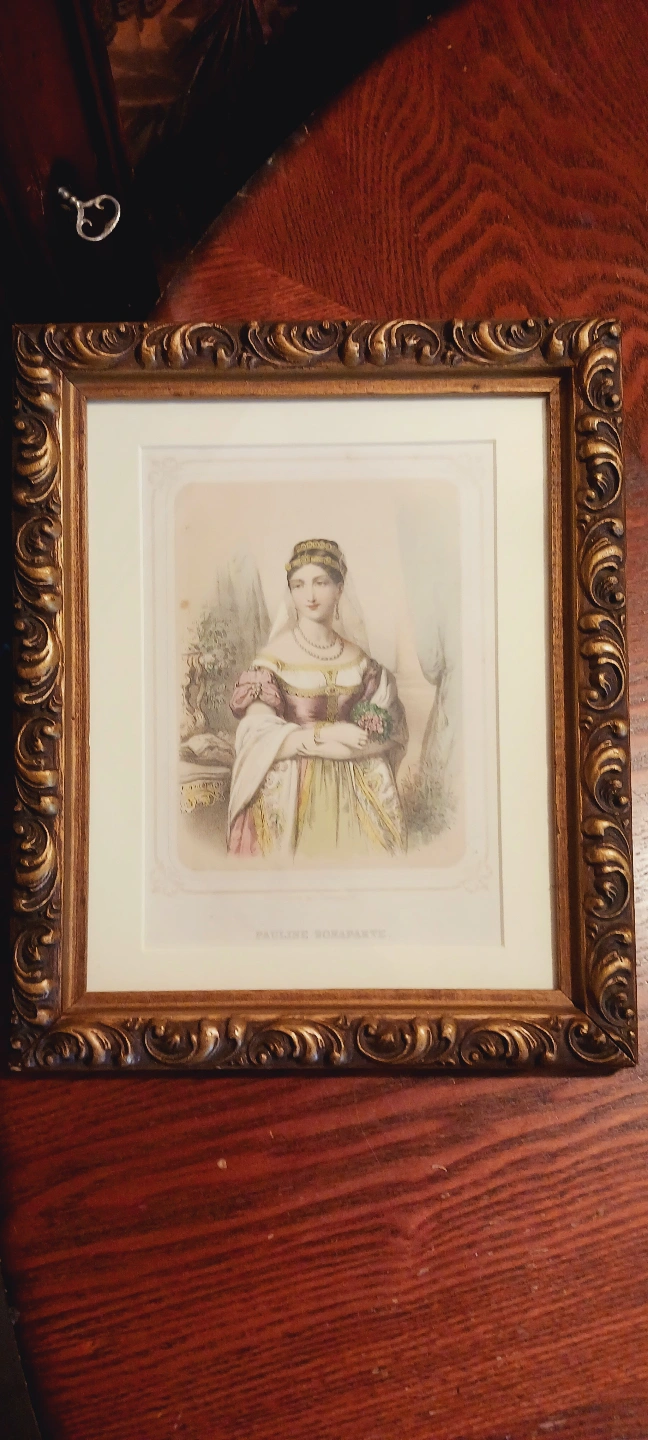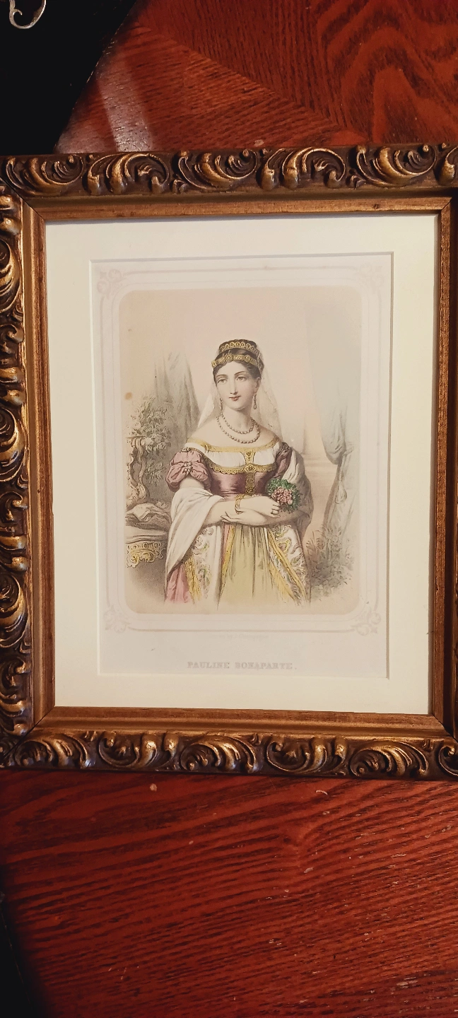 PAULINE BONAPARTE PORTRAIT ( NAPOLEON S SISTER ) ANTIQUE FRENCH ART PRINT ENGRAVING BEAUTIFULLY FRAMED IN ORNATE GOLD GILT FRAME.