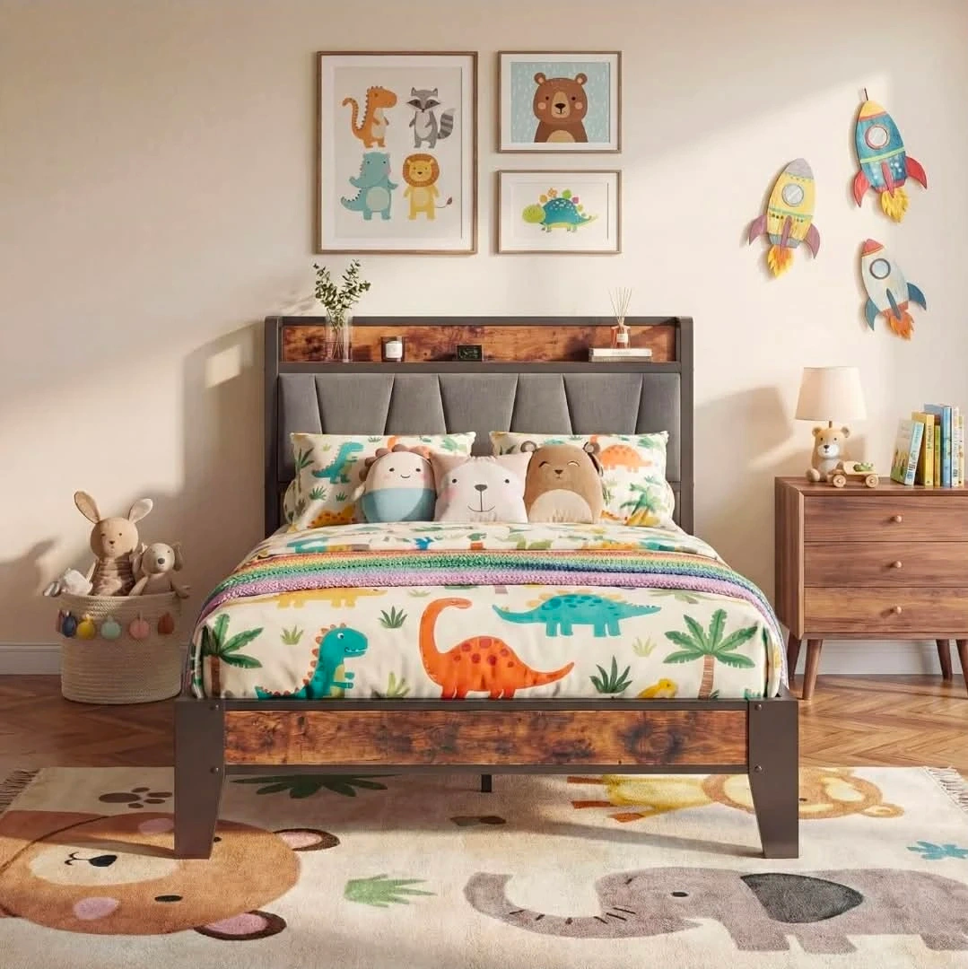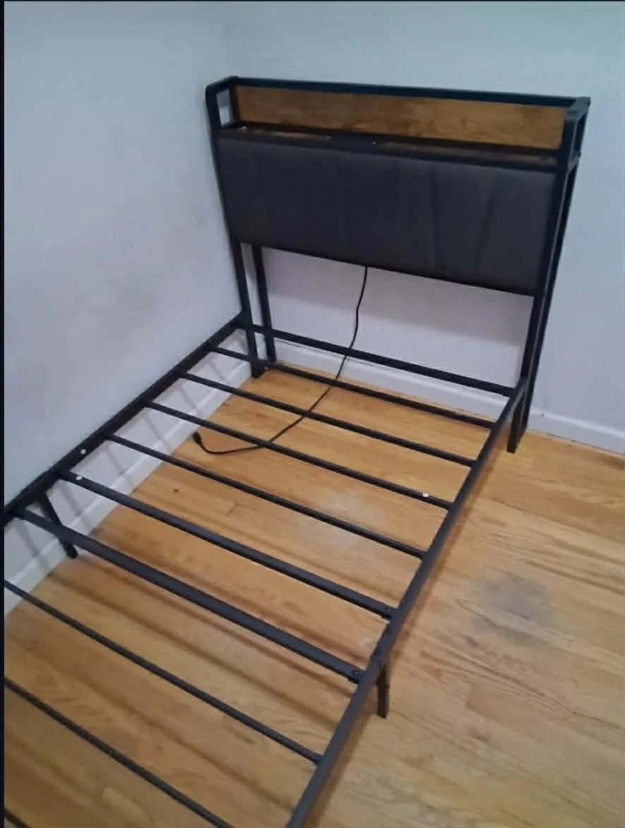 ✨️Twin Bed Frame with Upholstered Headboard & Charging Station