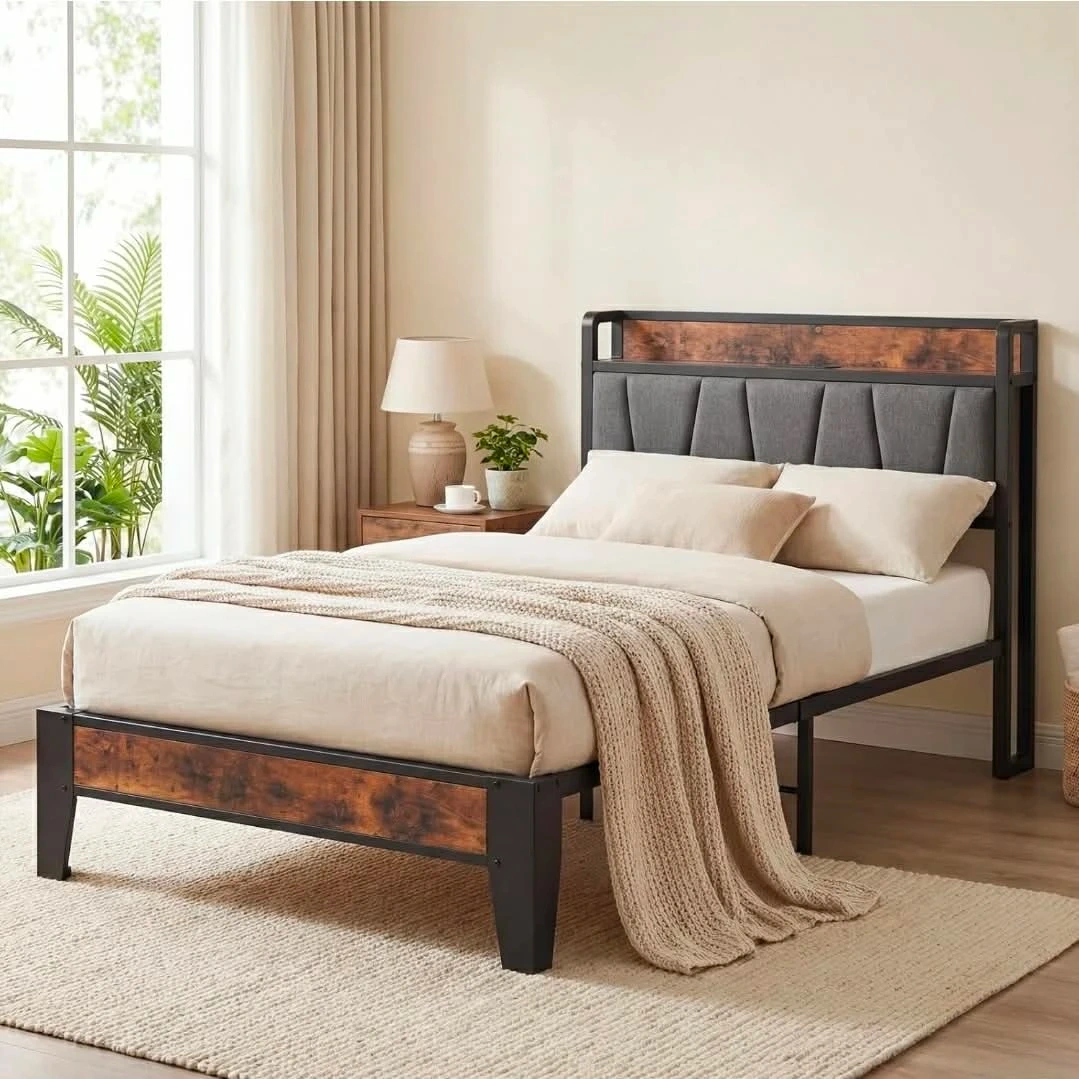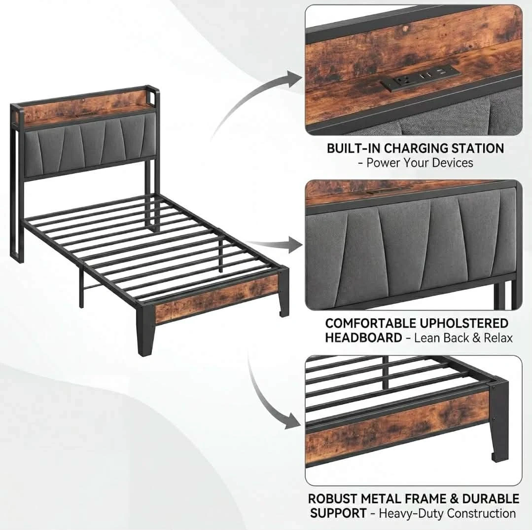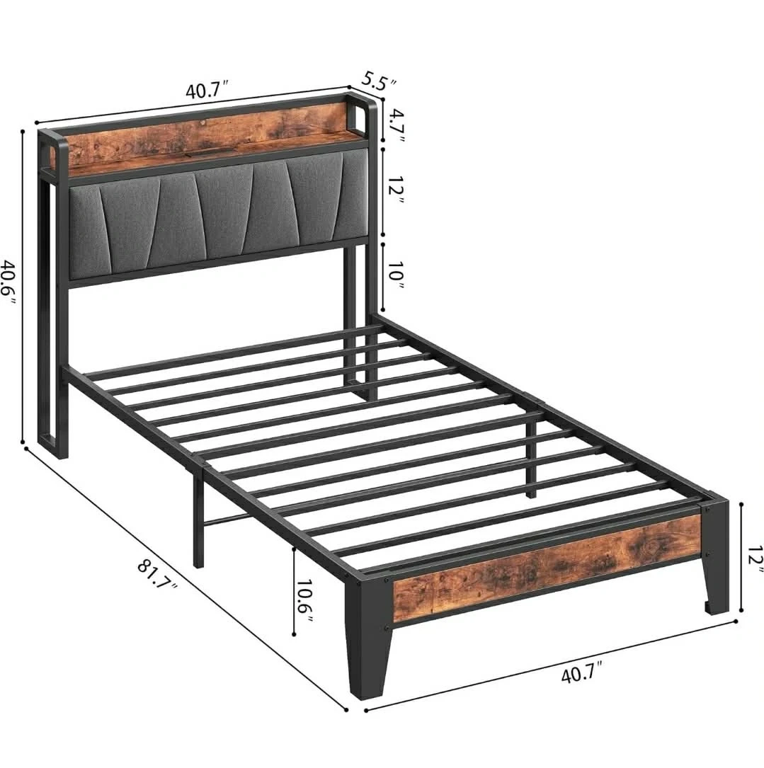 Upgrade your sleep setup with this modern, multi-functional Twin bed frame. It combines a sleek industrial look with essential tech features, perfect for small apartments or guest rooms.