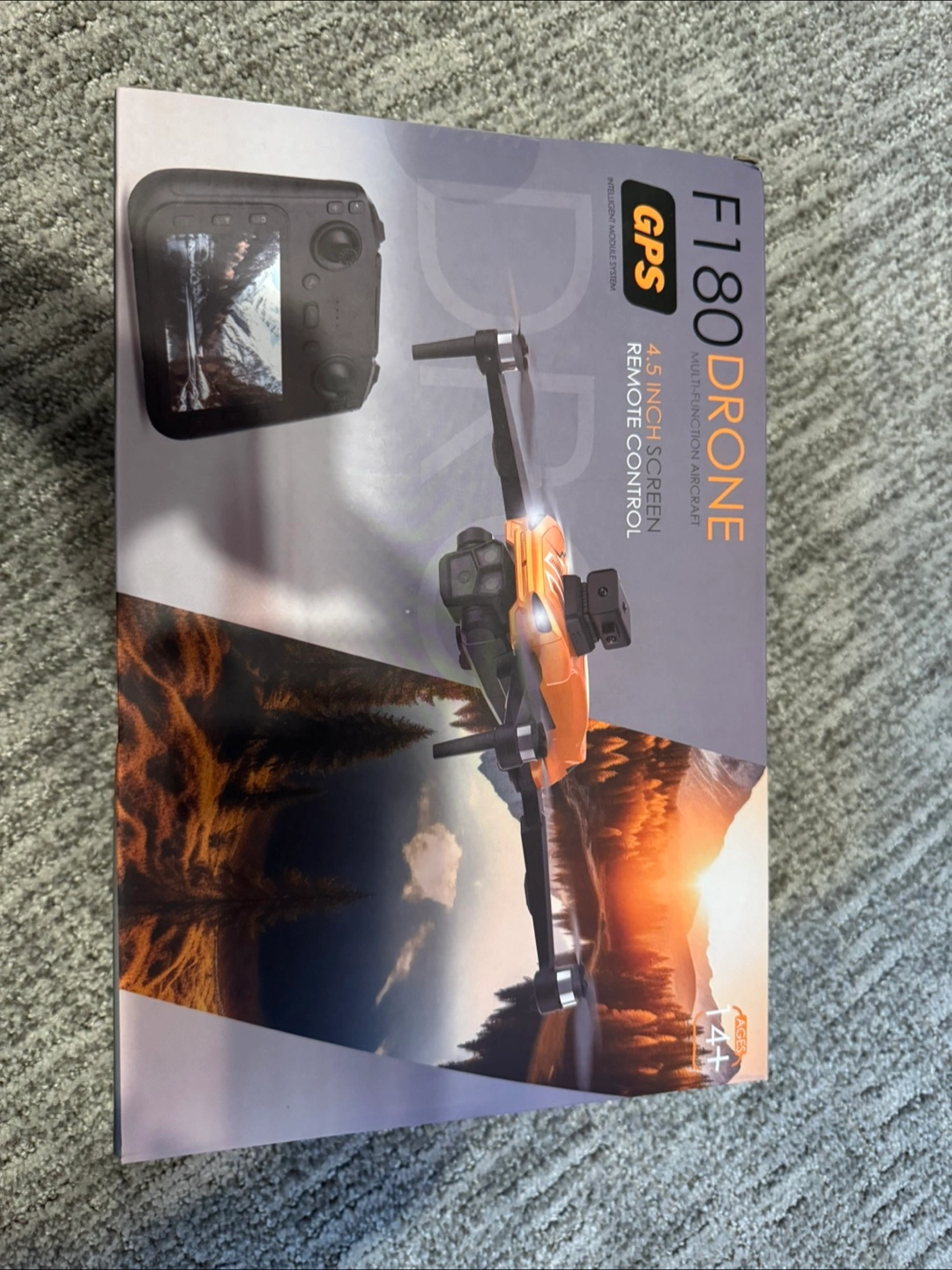 Selling a F180 Drone. It has a 4.5 inch screen and remote control. It also has GPS intelligent module system.