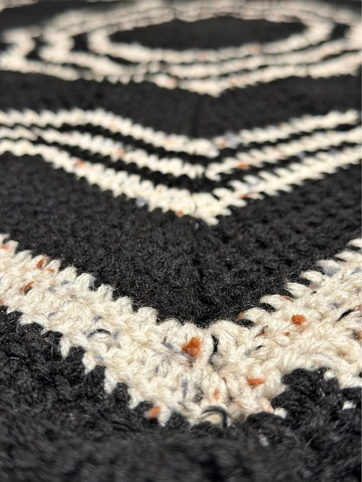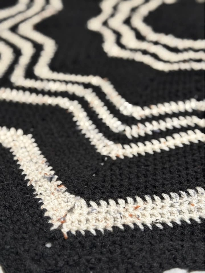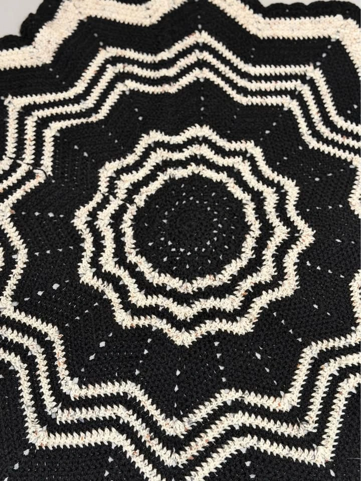 Handmade Crochet Starburst Blanket – Black & Cream | Round Throw