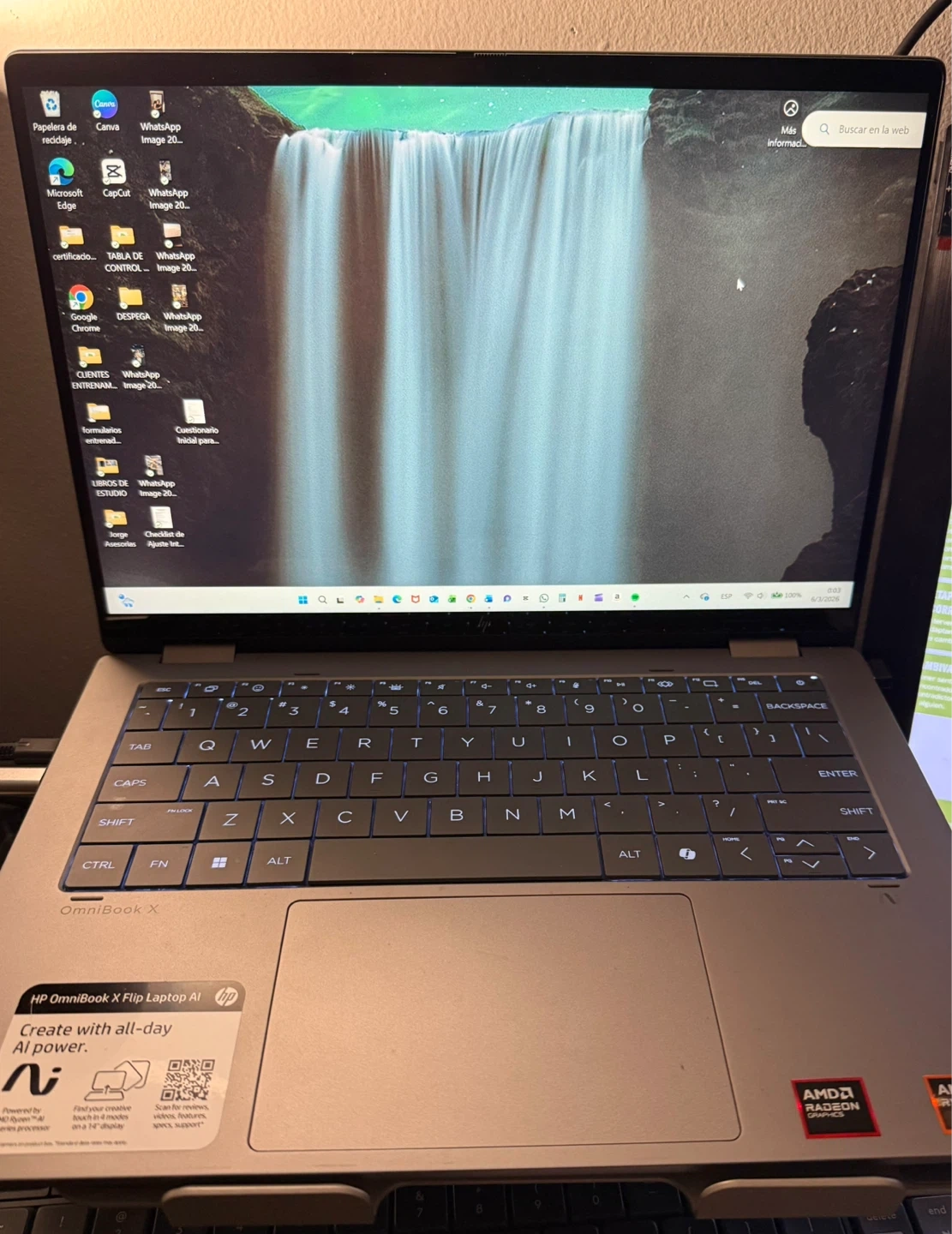 HP OmniBook X Flip Laptop AI. It's powered by an AMD Ryzen 5 340 processor and has 16GB of RAM. Storage is 512 gb total . Features AMD Radeon Graphics.