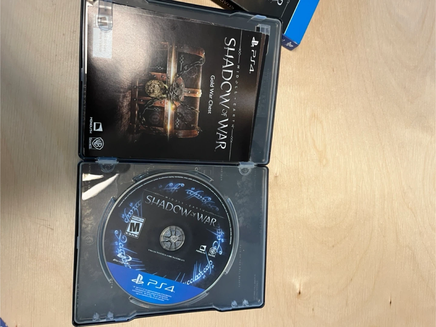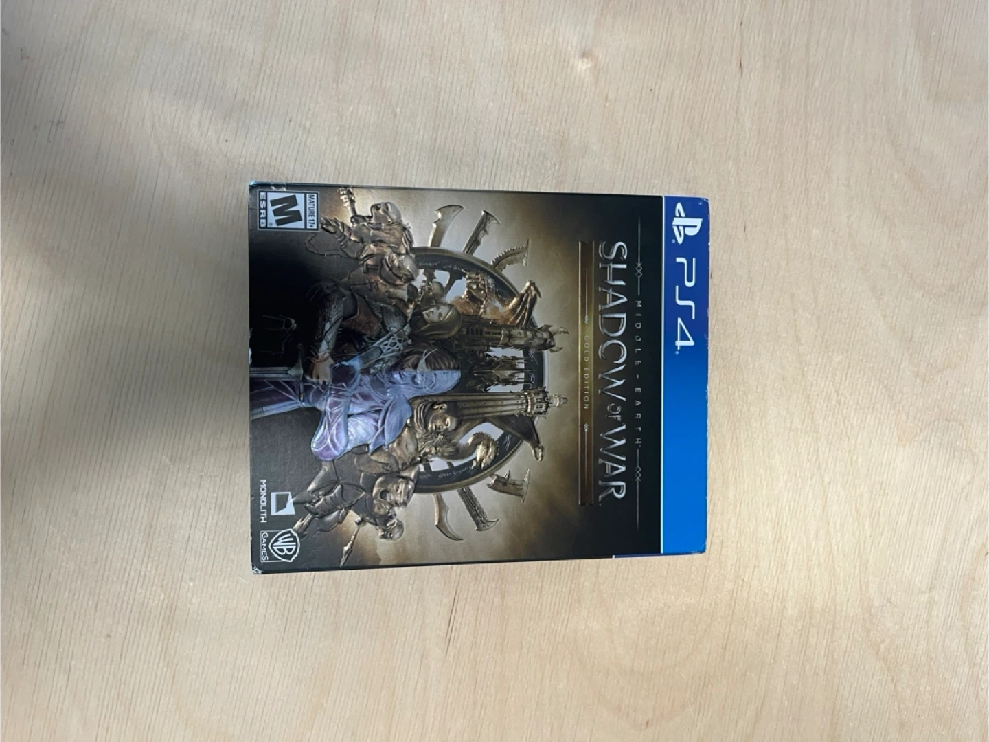 This is the Gold Edition of Middle-earth: Shadow of War for PlayStation 4. It includes the game disc and original case. The Gold War Chest artwork is featured on the case.