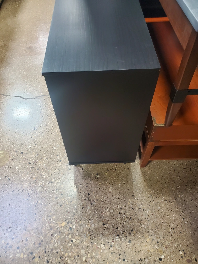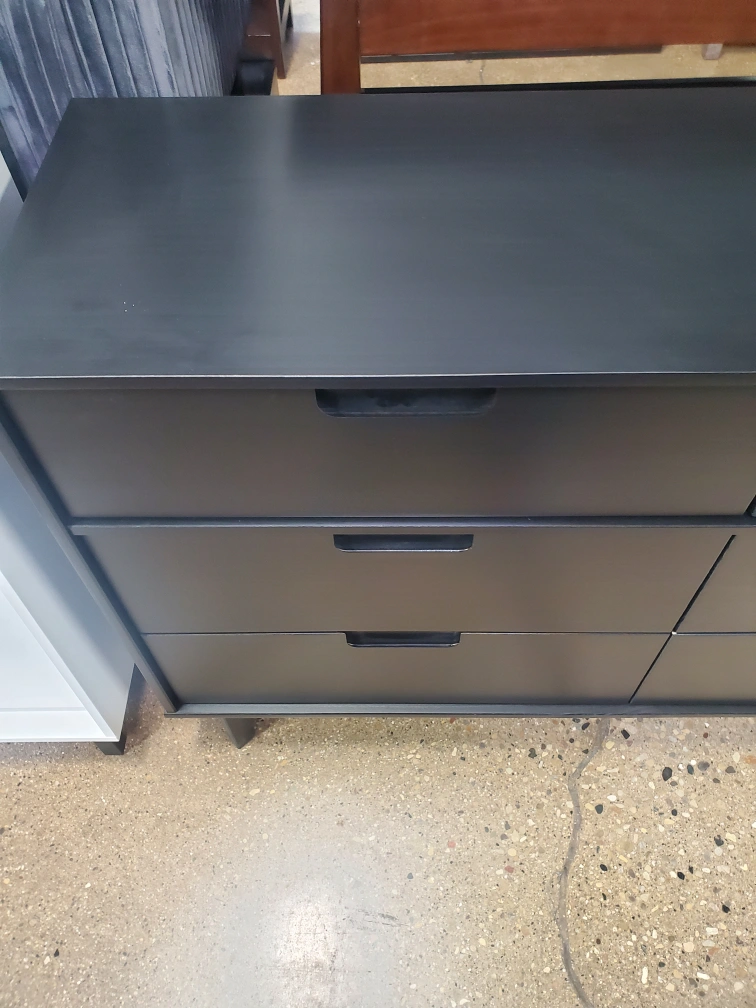 In a stylish, mid-century modern design featuring angled legs and cutout handles of solid pine wood . The intriguing design integrates a transitional aesthetic to complement your home décor.