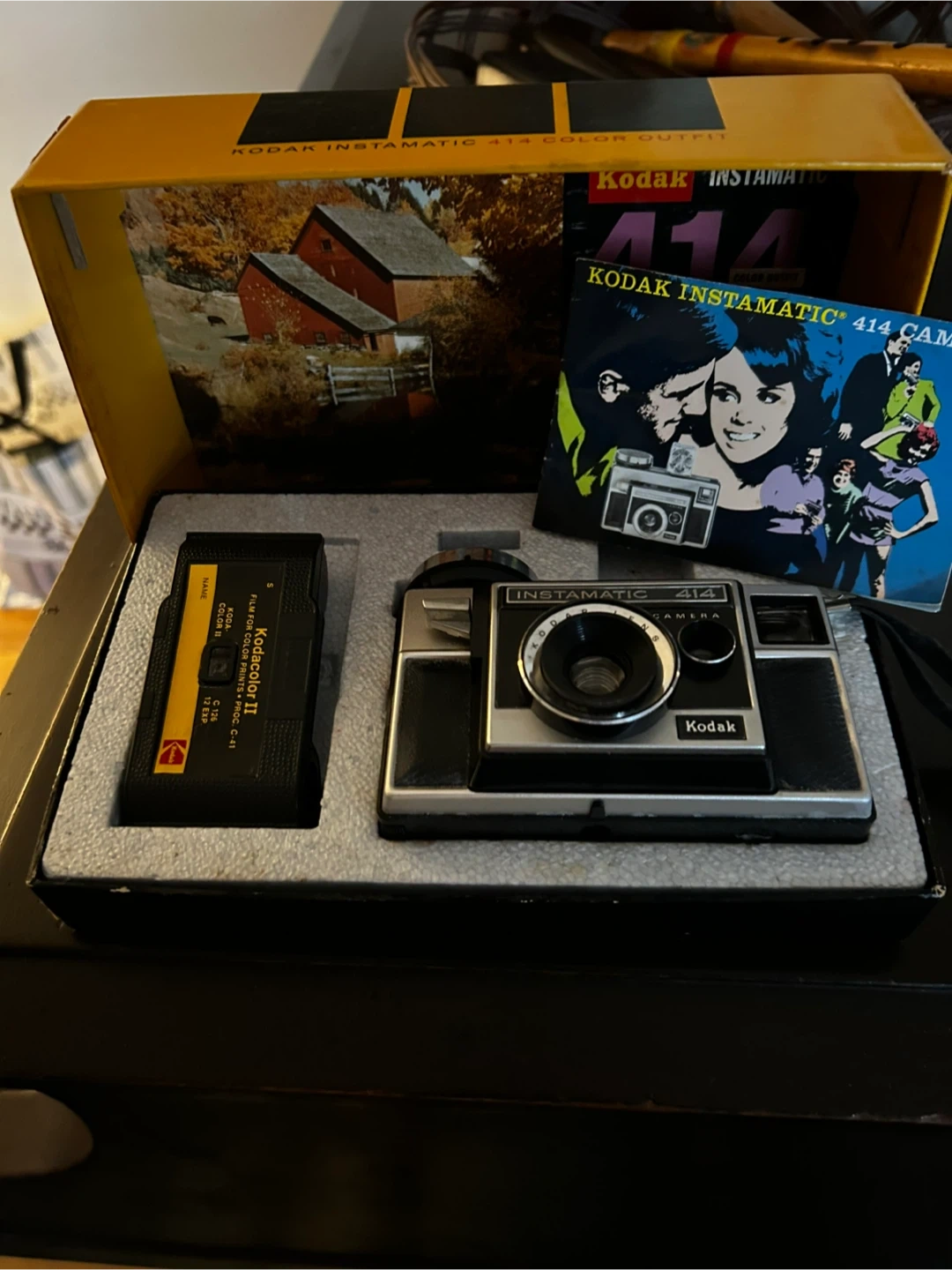 Selling a Kodak Instamatic 414 camera. It comes with its original box and accessories. Also includes a Dura Own Multi-Use Picture-Lite, complete with lamp and turn switch! Great for photography enthusiasts and vintage collectors alike