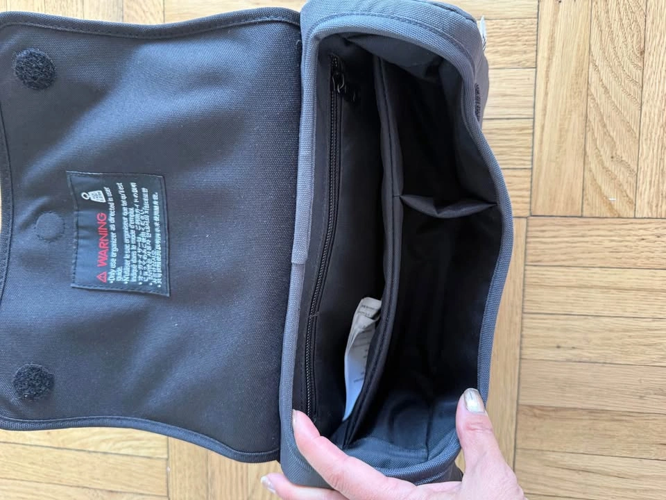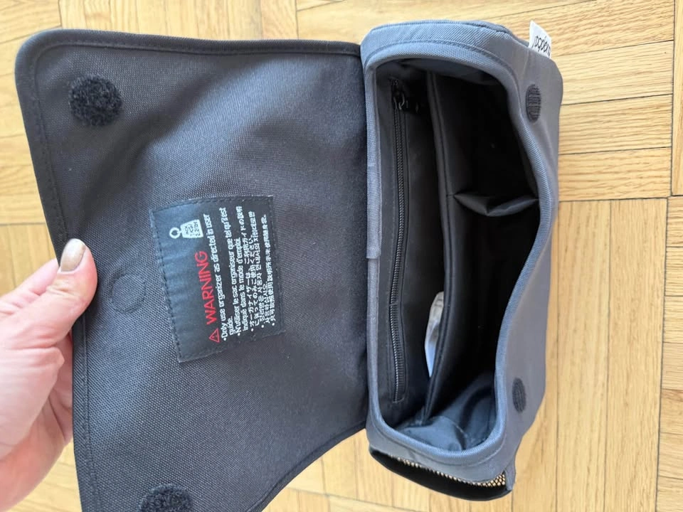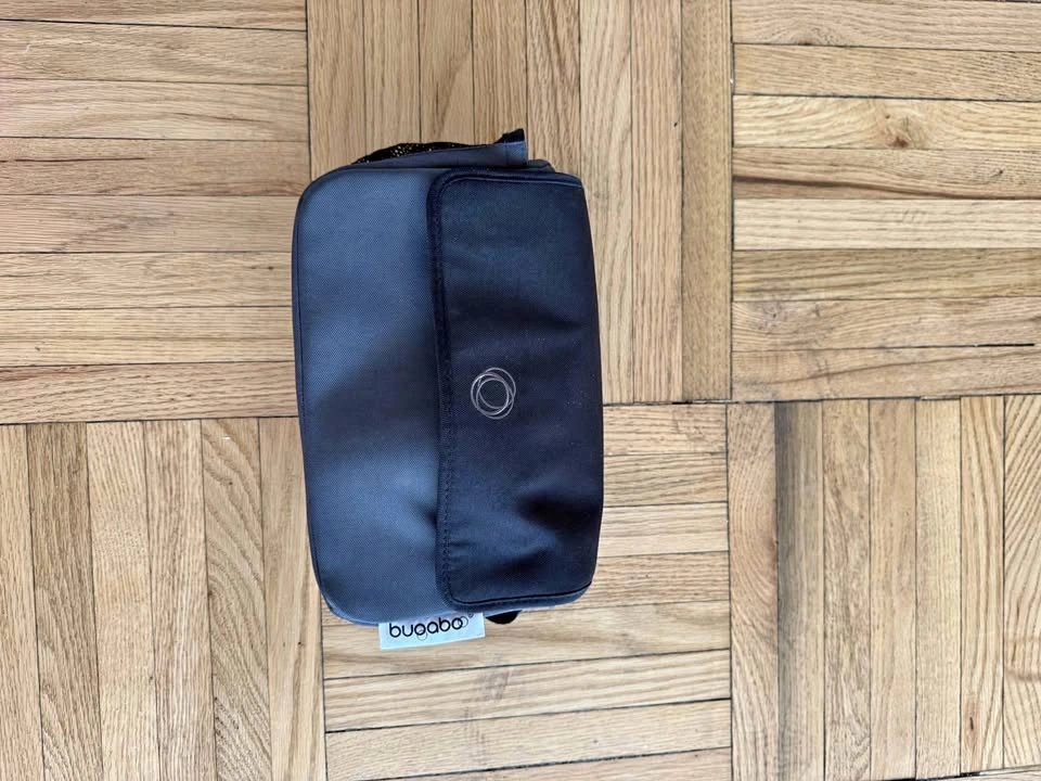 This is a Bugaboo Organizer Stroller Storage Bag in gray / black. It's a convenient and stylish way to keep your essentials organized while on the go with your stroller. The bag features multiple compartments for easy storage and quick access to your belongings.