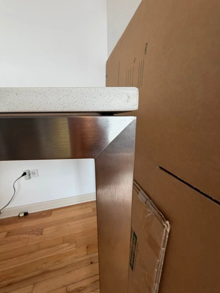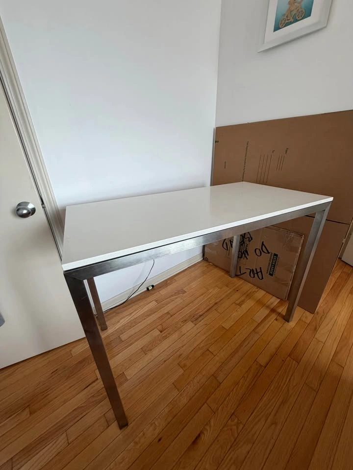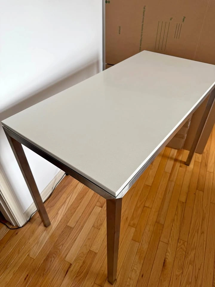 Room & Board stainless steel console/work table with engineered stone (quartz-style) top. Clean, modern piece—heavy, stable, and built to last. Works great as a desk, kitchen prep table, or entry console. 48”W x 24”D x 35”H. Excellent condition. $300. CASH preferred - ZELLE. Pickup in River West (Chicago Ave & Halsted).