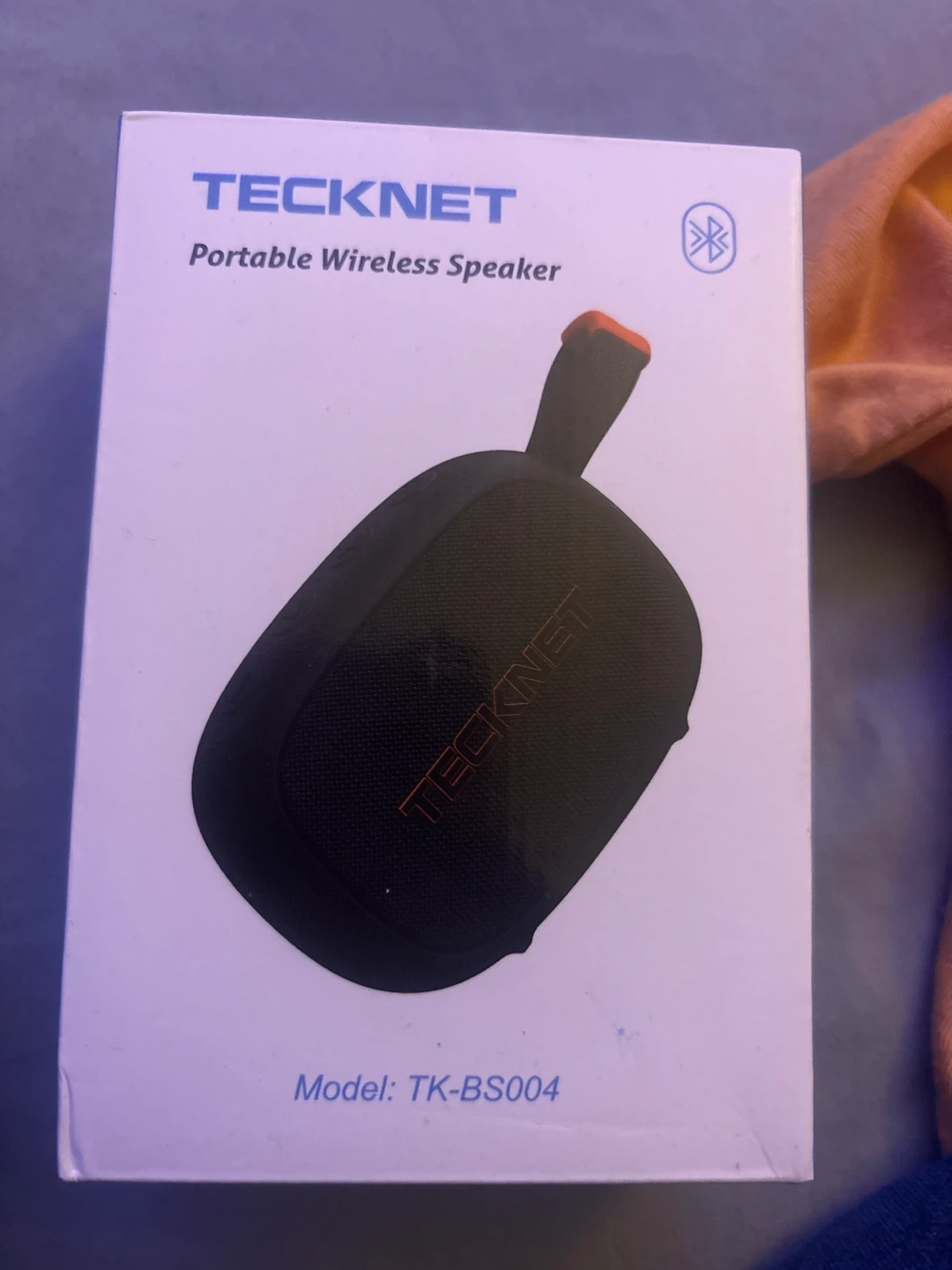 This is a TeckNet portable wireless speaker. It's a black and orange Bluetooth model TK-BS004. It's a compact speaker with a handy loop for carrying.