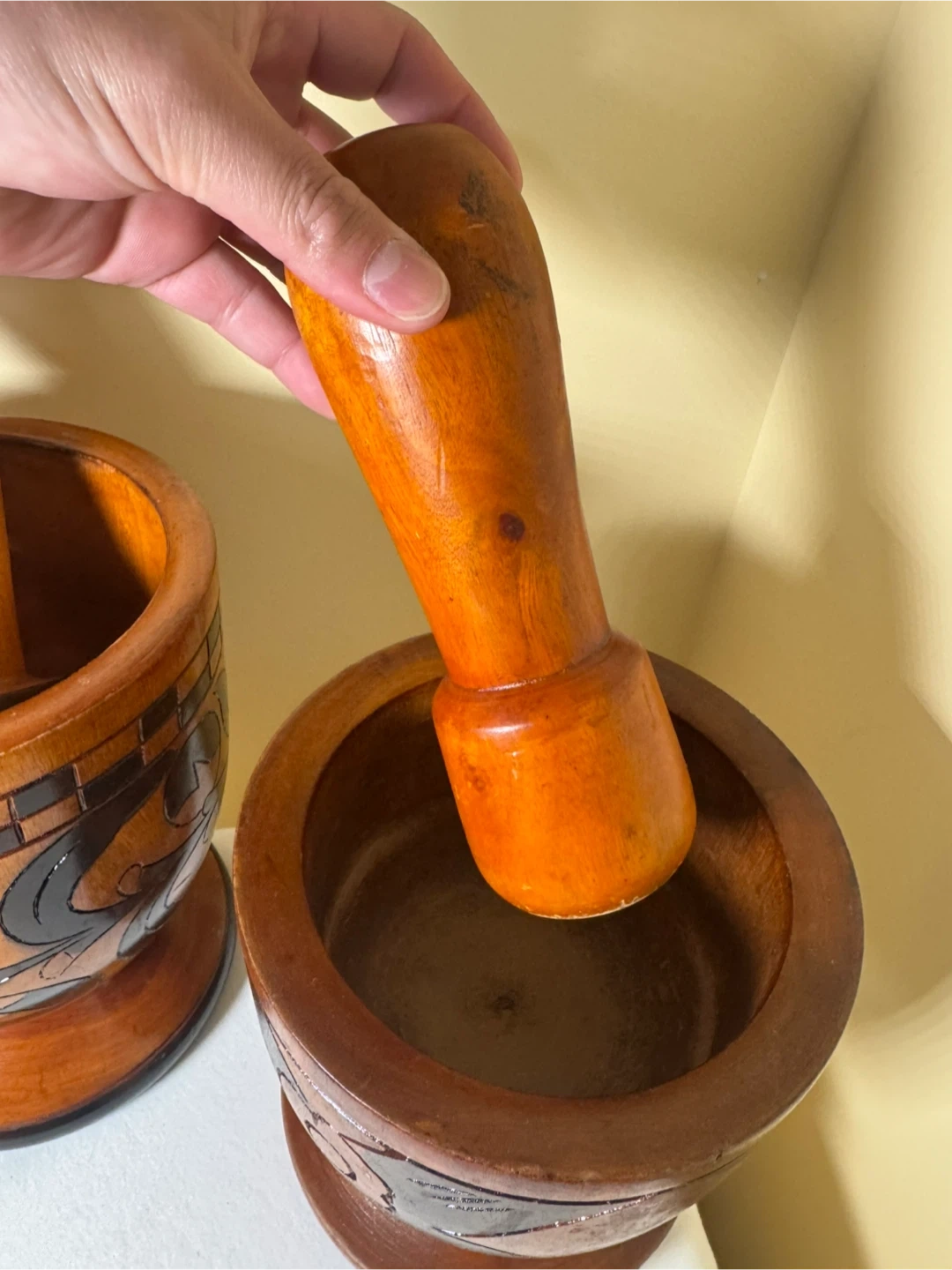 Wooden Mortar and Pestle Set - Decorative Carvings