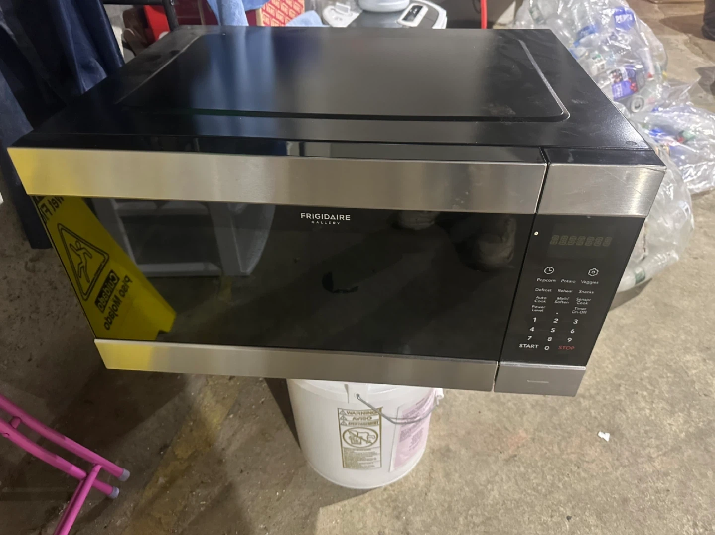 Selling a Frigidaire Gallery microwave. It has settings for popcorn, potato, veggies, defrost, reheat, and snacks. It also has sensor cooking, auto soften, and a timer. Great for any kitchen!