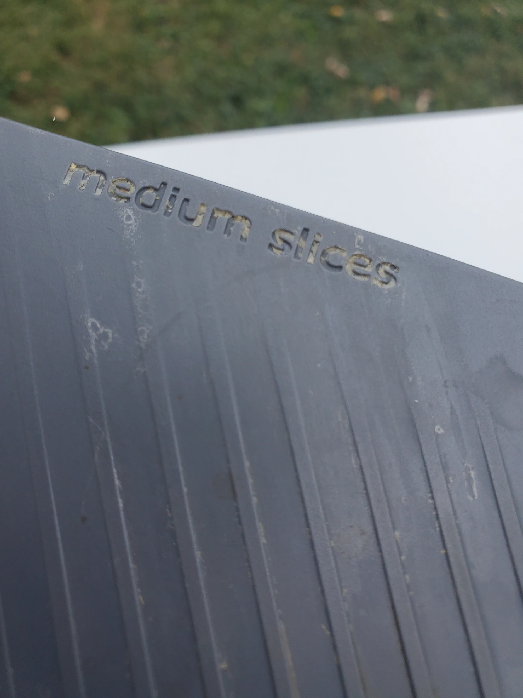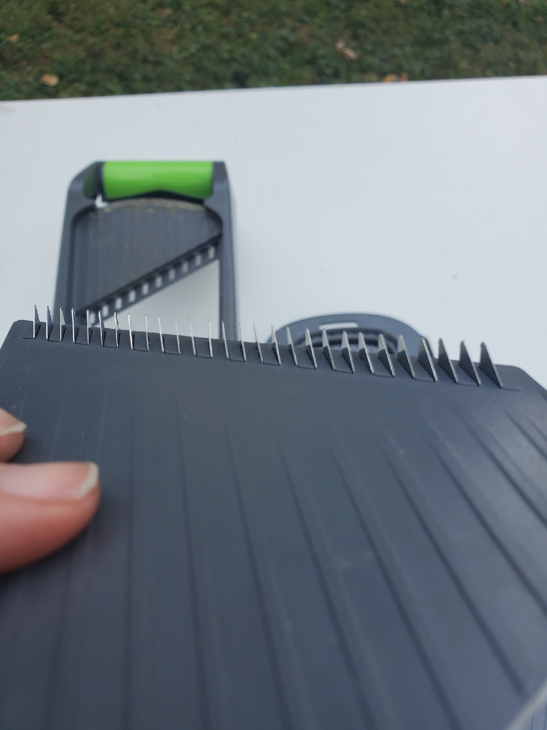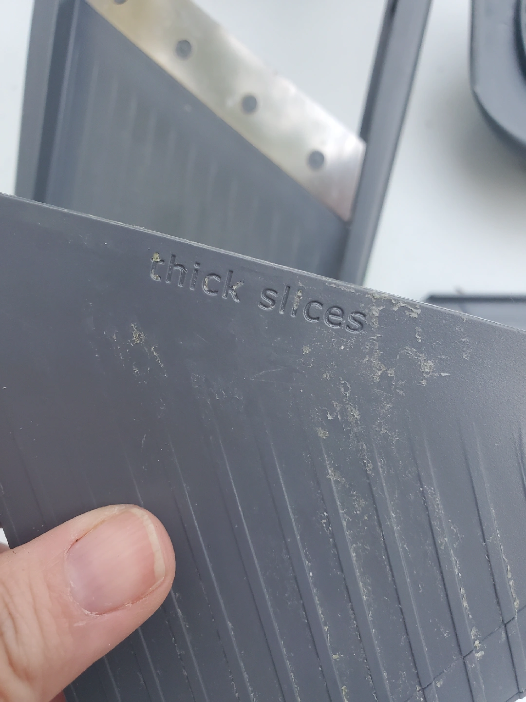I'm selling an adjustable mandoline food slicer. It has settings for both thick and super thin slices. Great for getting consistent cuts in the kitchen!