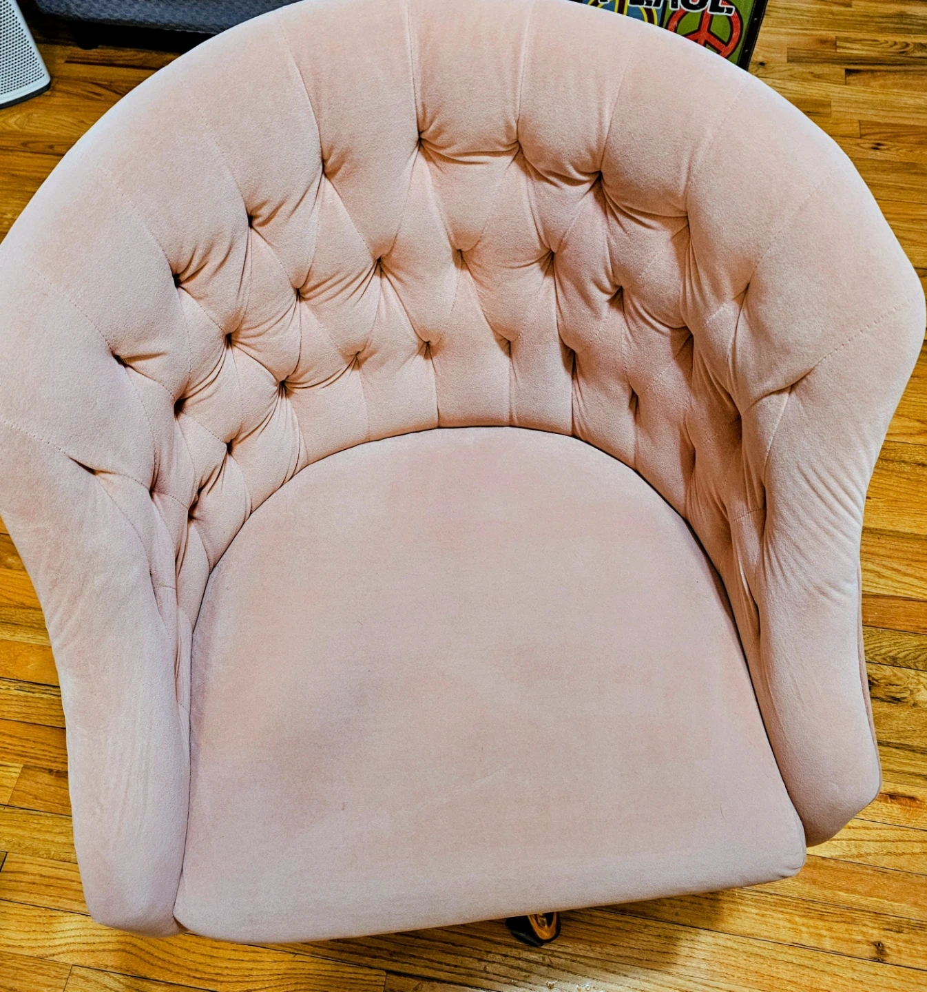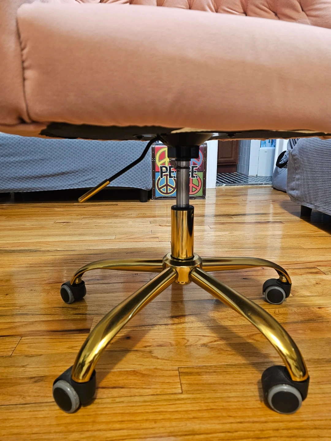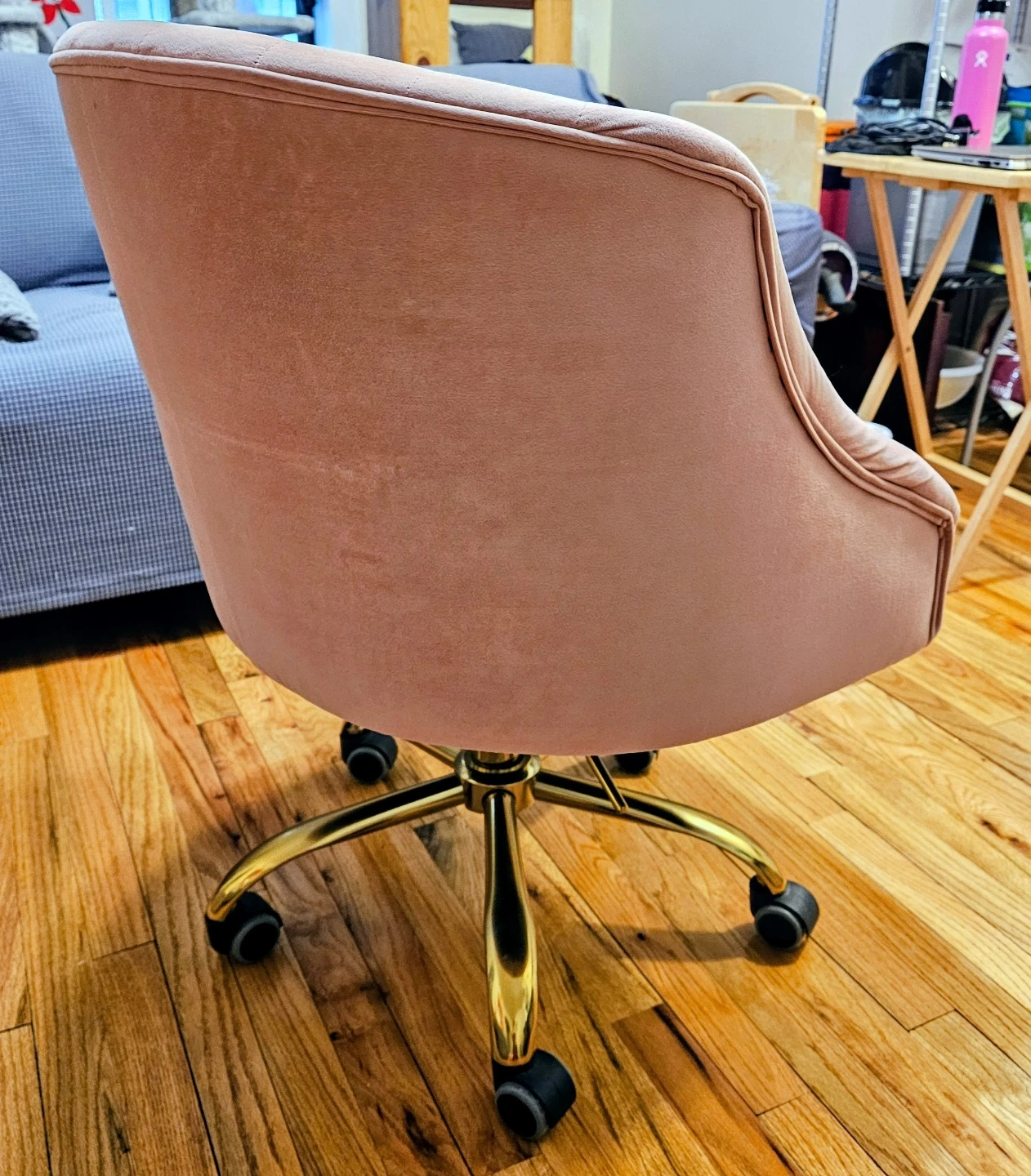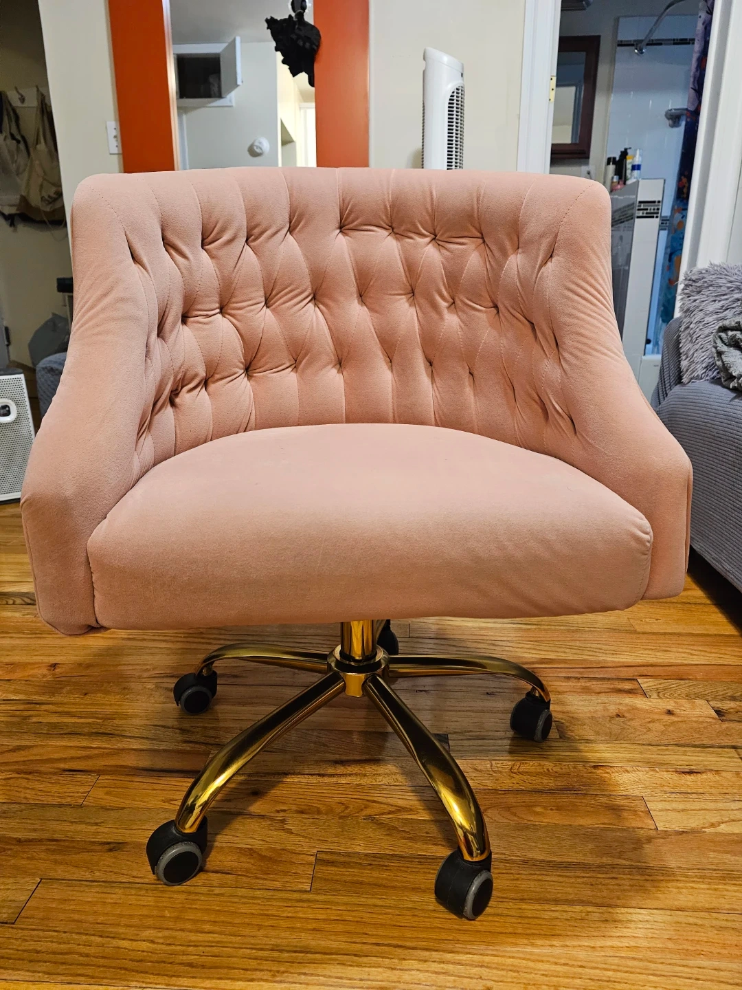 Pink Velvet Tufted Office Chair with Gold Base
