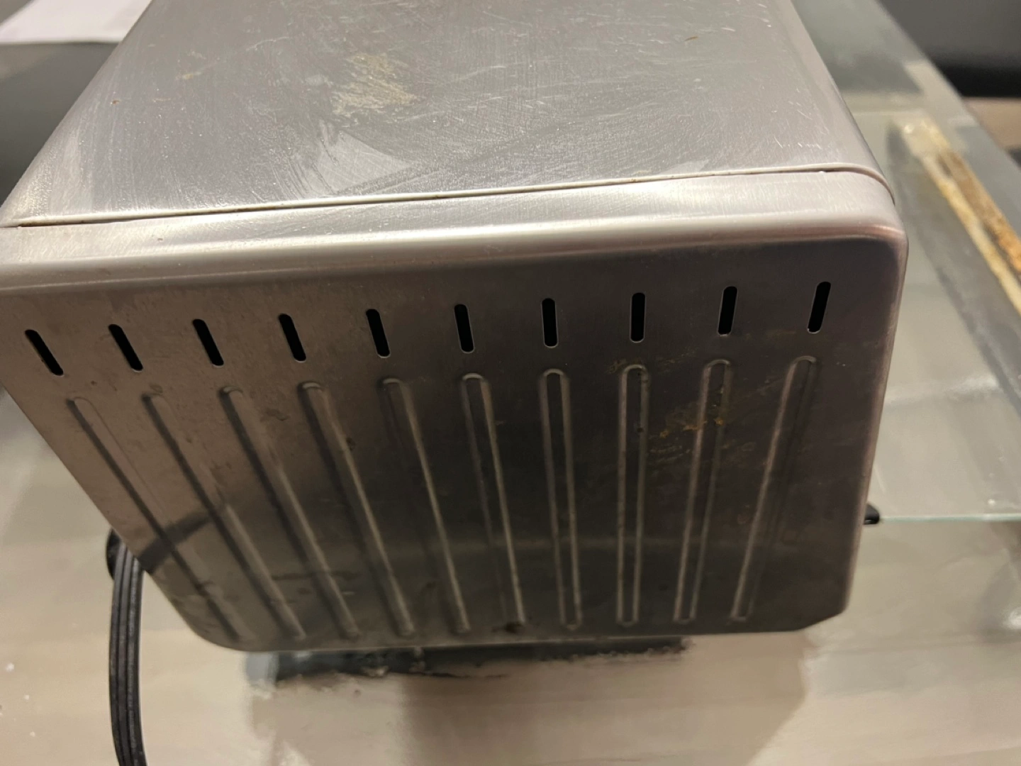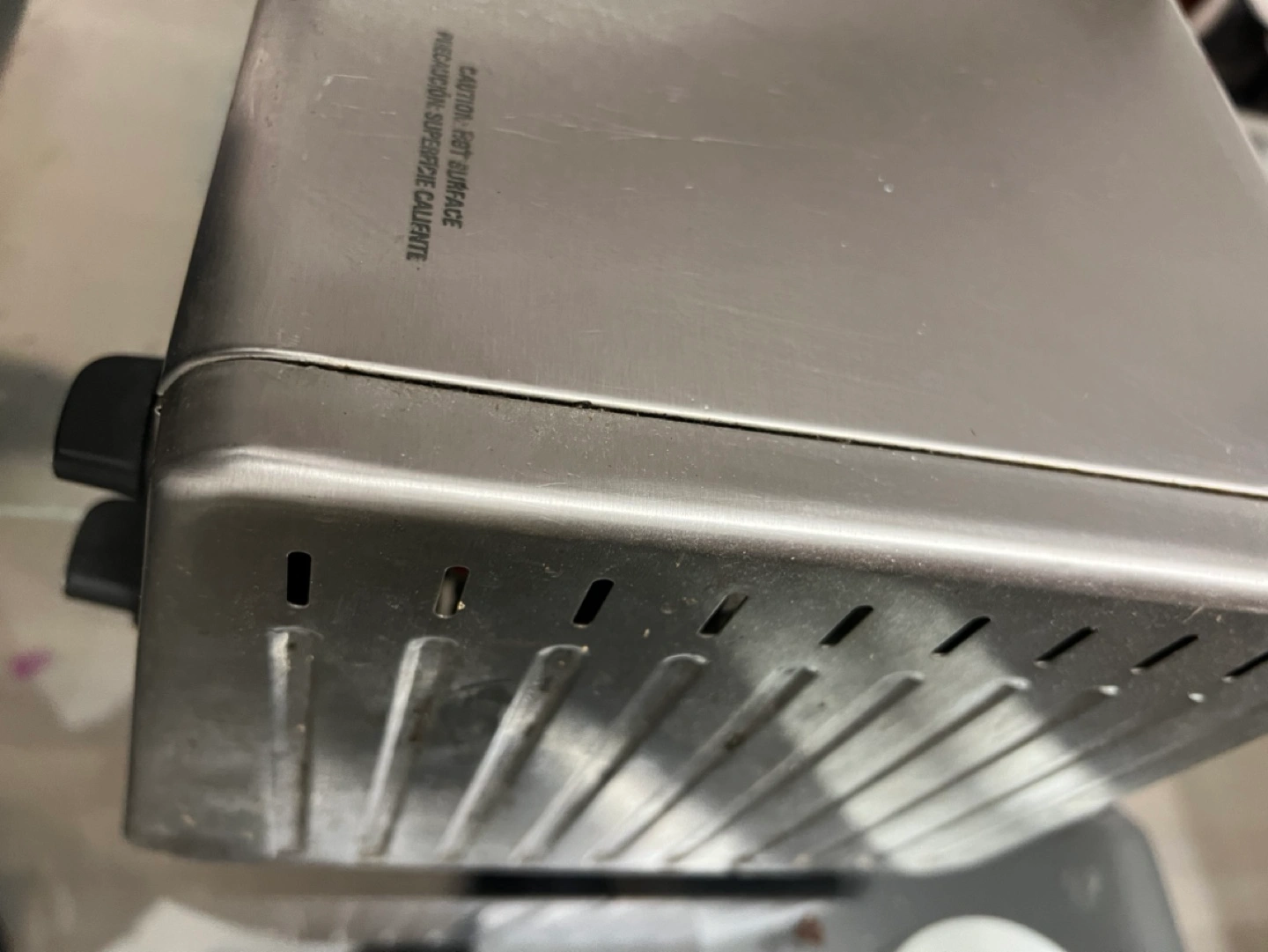 Toaster has a lot of wear on the surface but functions perfectly
