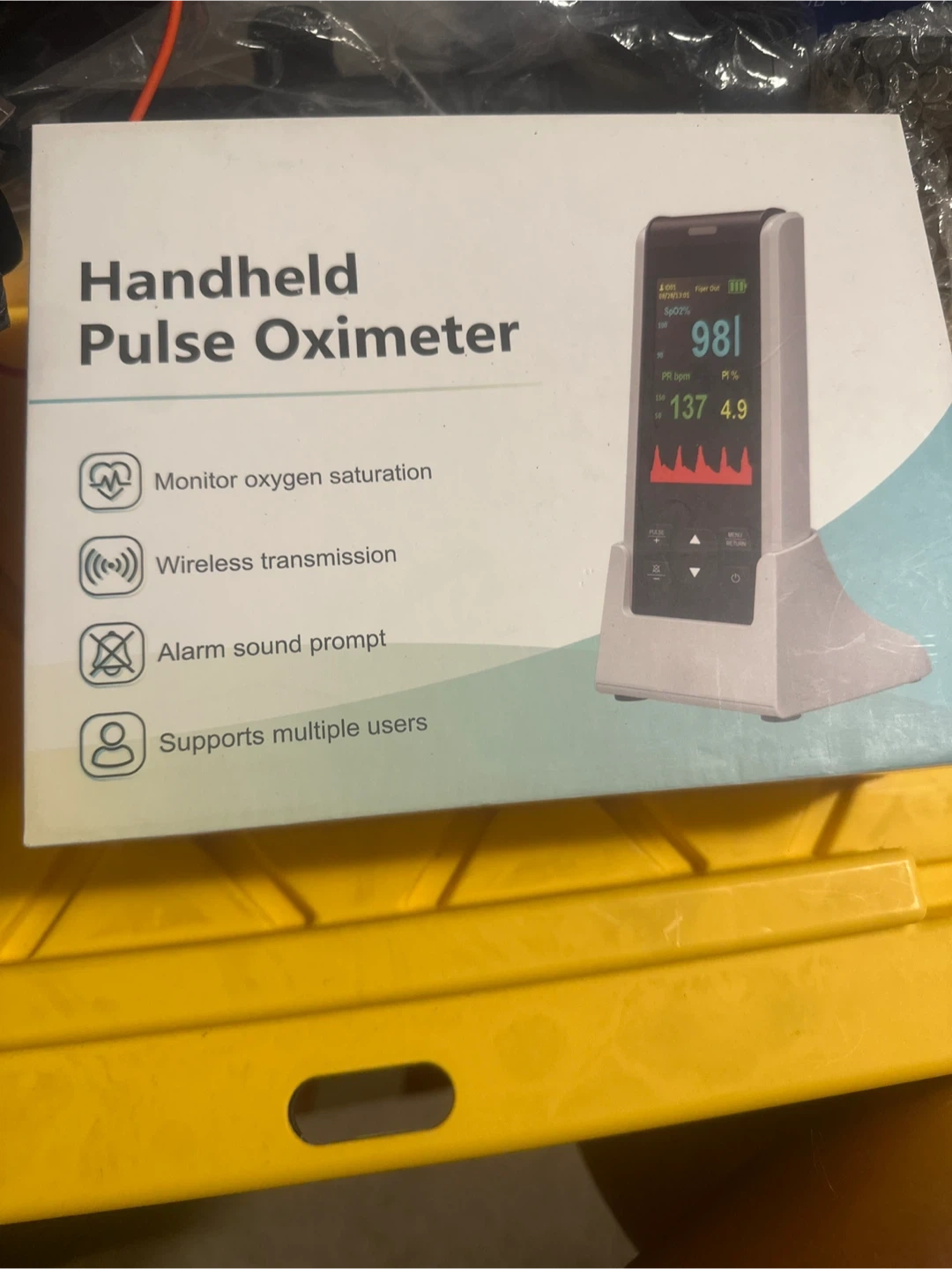 This handheld pulse oximeter monitors oxygen saturation and has wireless transmission. It includes an alarm sound prompt and supports multiple users. It's great for quick health checks at home!