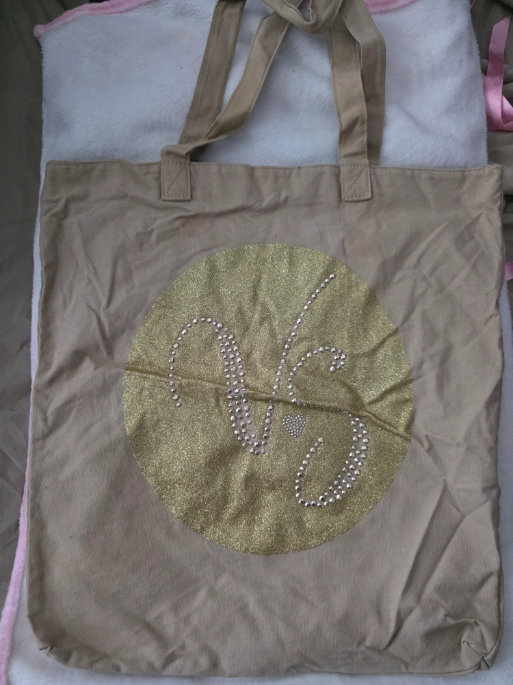I'm selling a brand new Victoria's Secret tote bag! It's a tan color with a gold circle and rhinestone VS logo. This bag is in perfect condition and ready for a new home