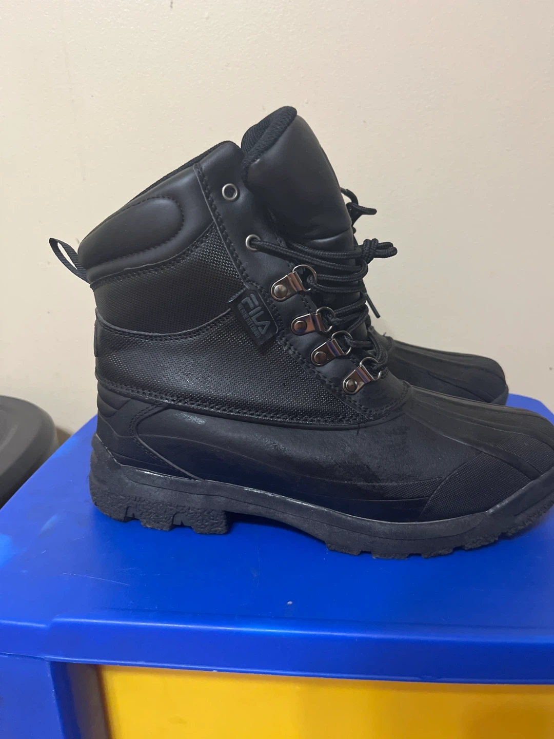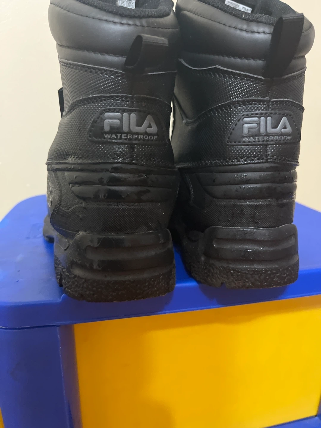 Fila waterproof boots in black. Lace-up closure with a durable rubber sole. These boots are designed for wet weather conditions.