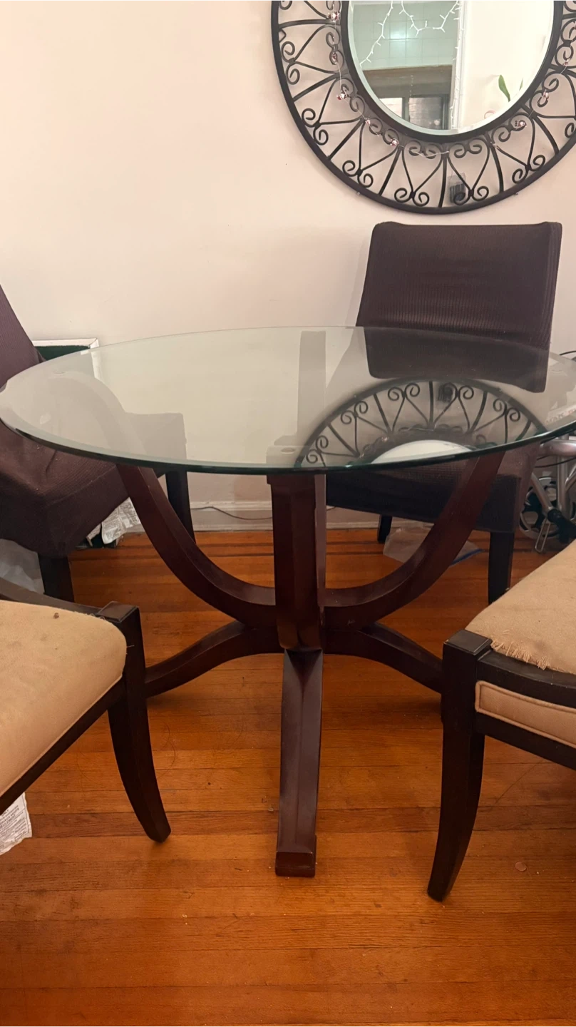 Round Glass Top Dining Table with Wooden Base