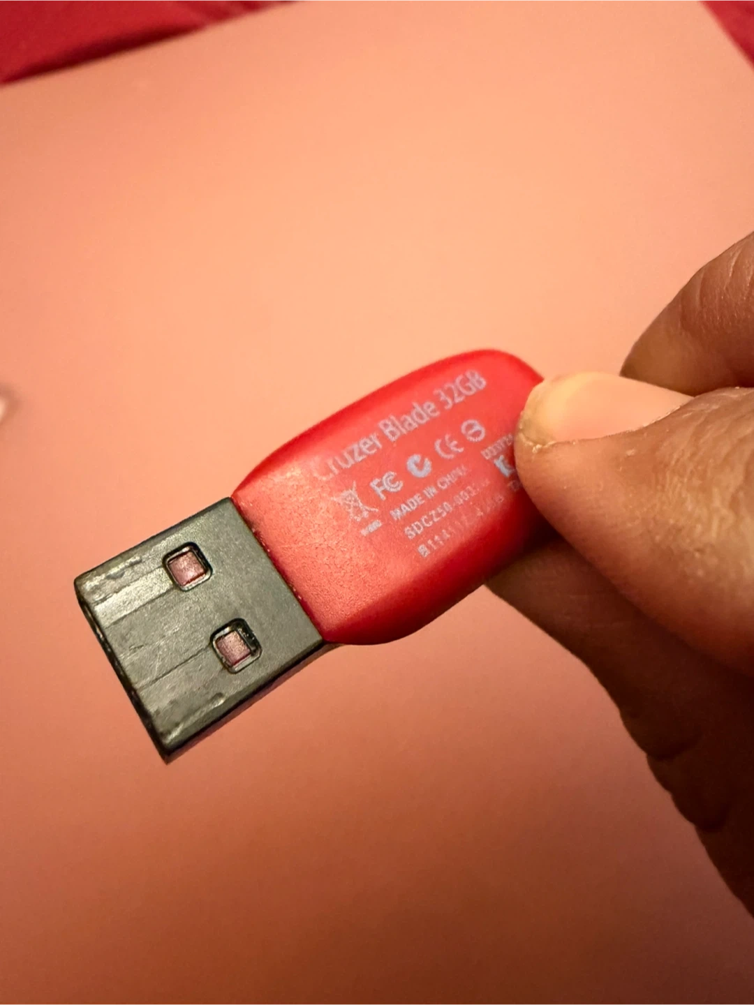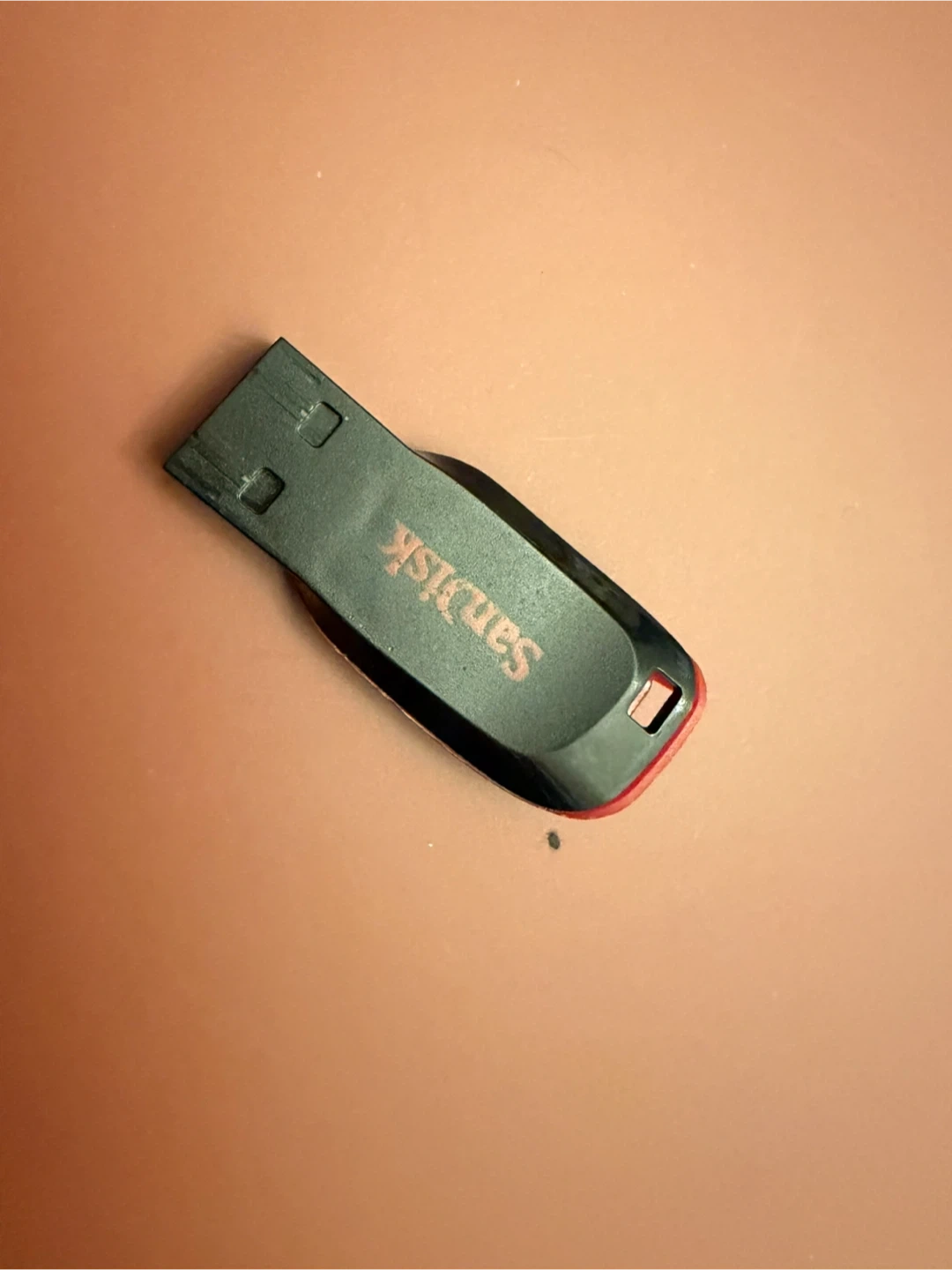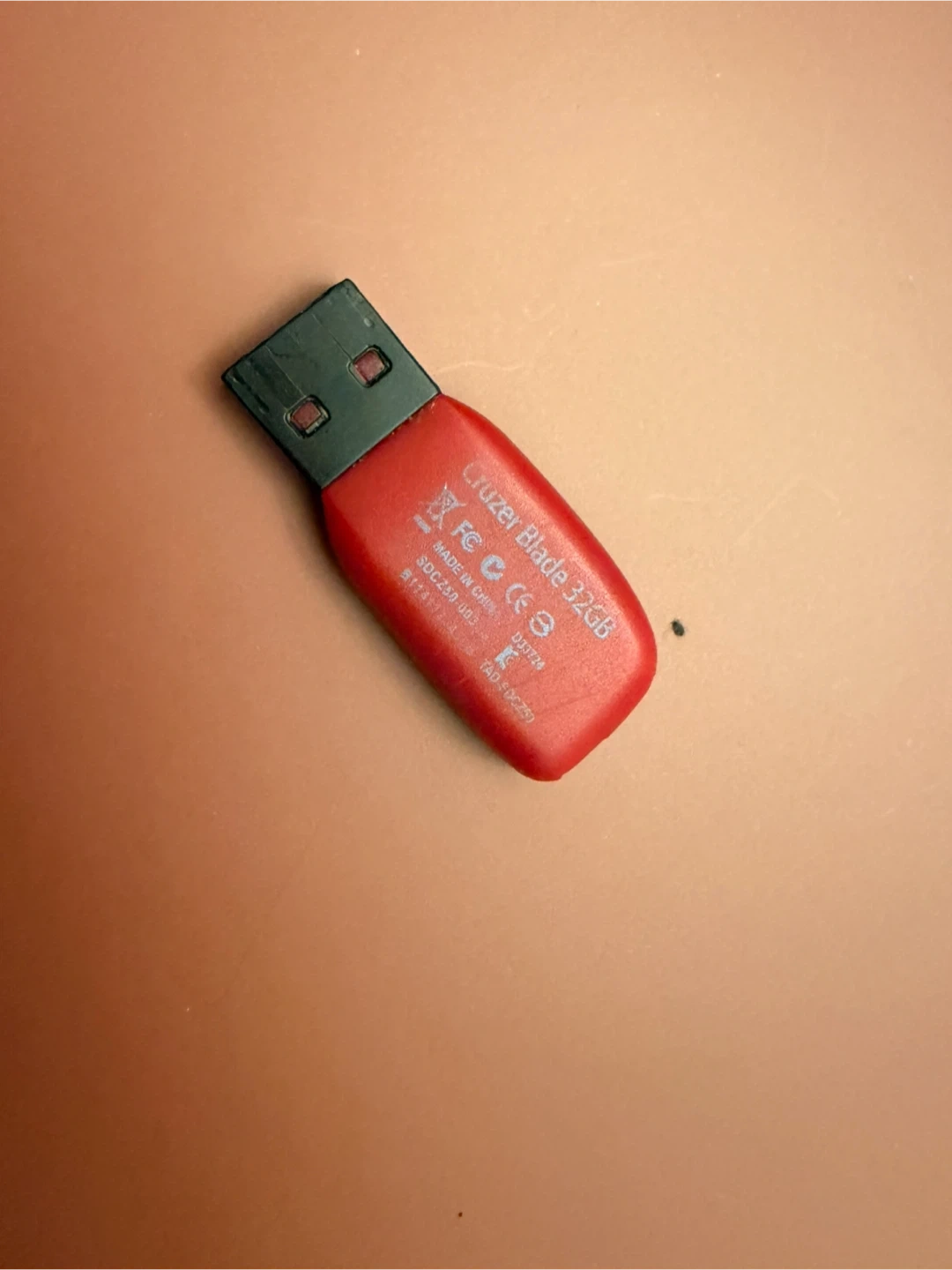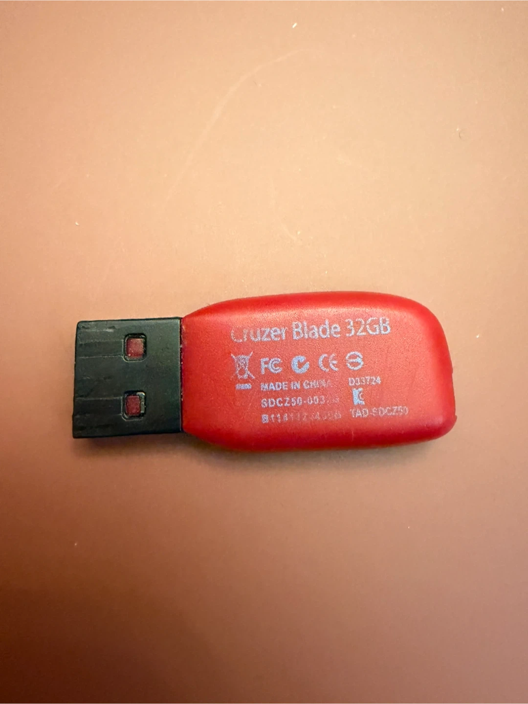 This is a SanDisk Cruzer Blade USB flash drive with 32GB of storage. It's a compact and reliable way to carry your files. Just plug it into your computer's USB port!