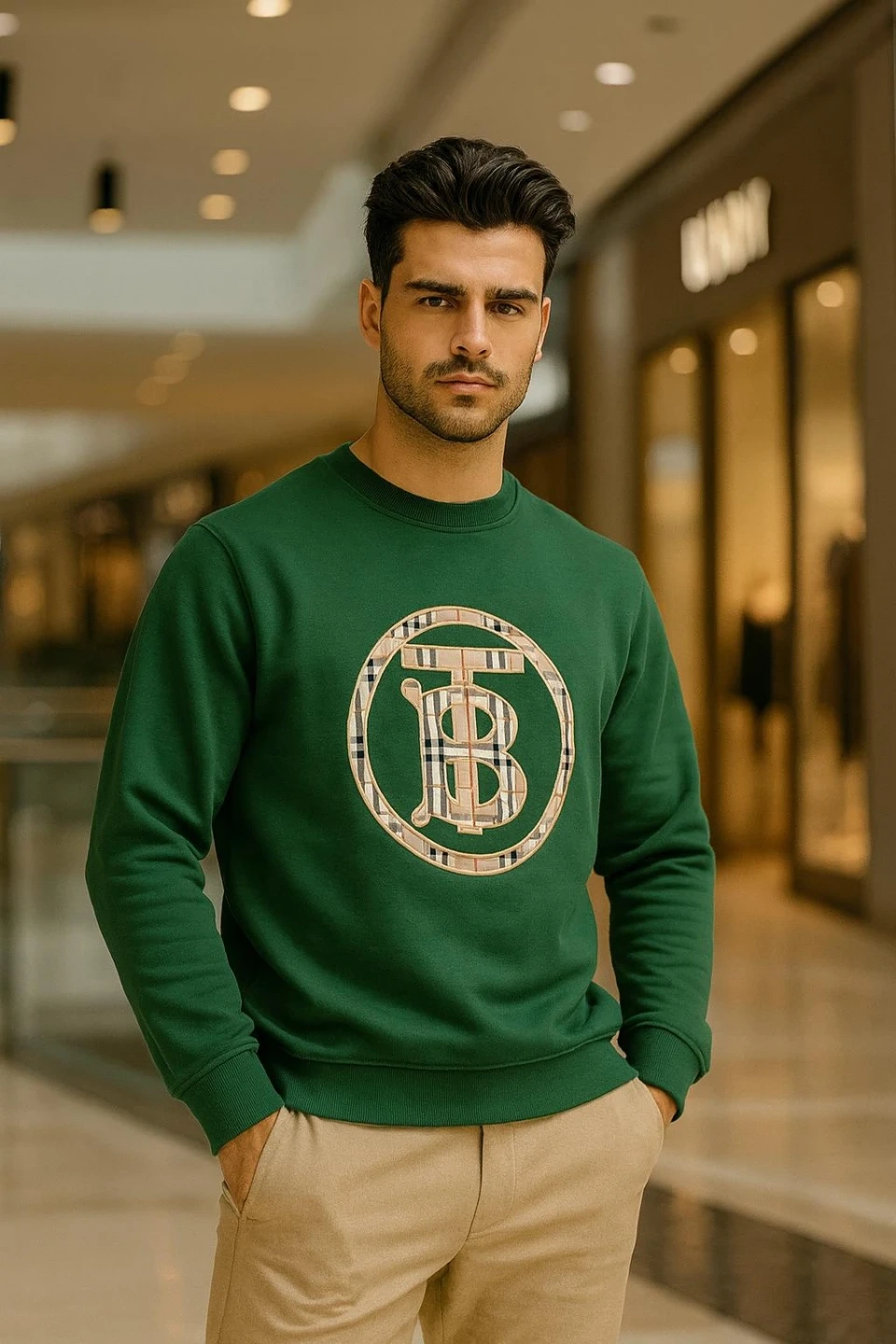 Selling a stylish Burberry sweatshirt in green, size L. This cozy sweatshirt features the iconic Burberry logo. It's in great condition and ready for a new owner!