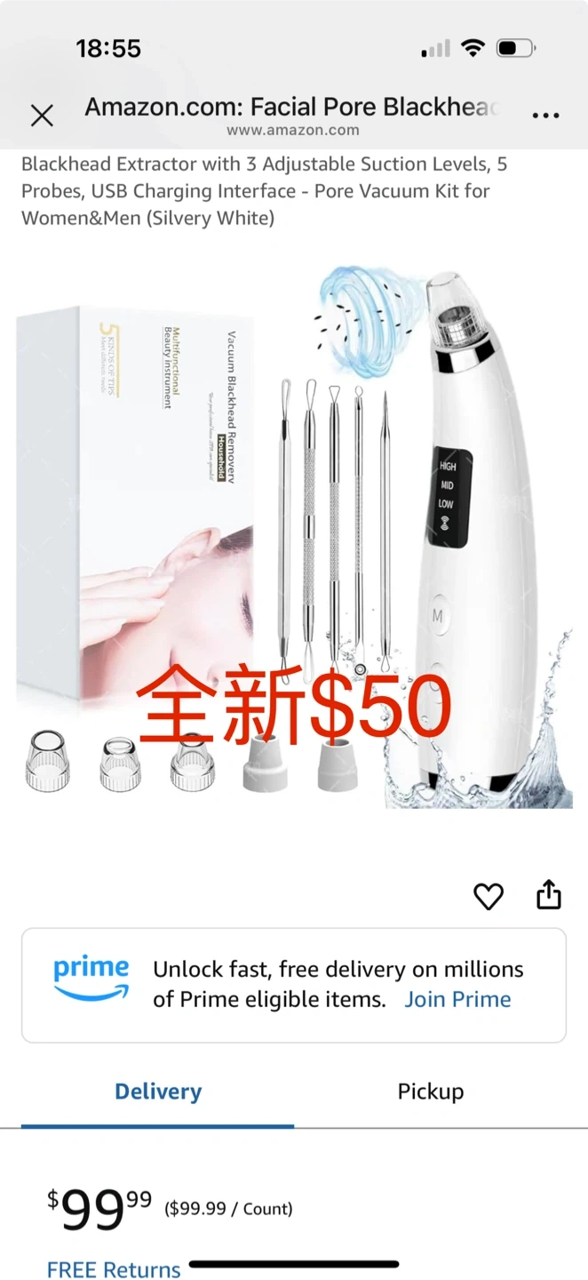 Facial Pore Blackhead Remover Vacuum - Face Cleaner and Blackhead Extractor with 3 Adjustable Suction Levels, 5 Probes, USB Charging Interface - Pore Vacuum Kit for Women&Men (Silvery White)