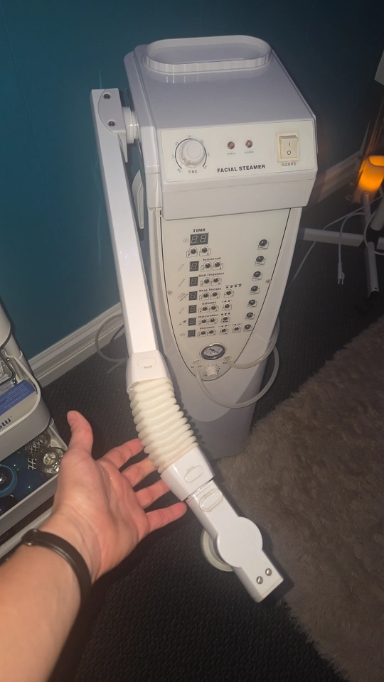 0This is a multi-function facial steamer beauty machine. It features various functions like High-Frequency, Meso-Therapy, Galvanic, Skin scrubber, and Ultrasonic. Great for professional use! comes with tool accessories, a heavy duty magnifying glass and light, and a power cord.