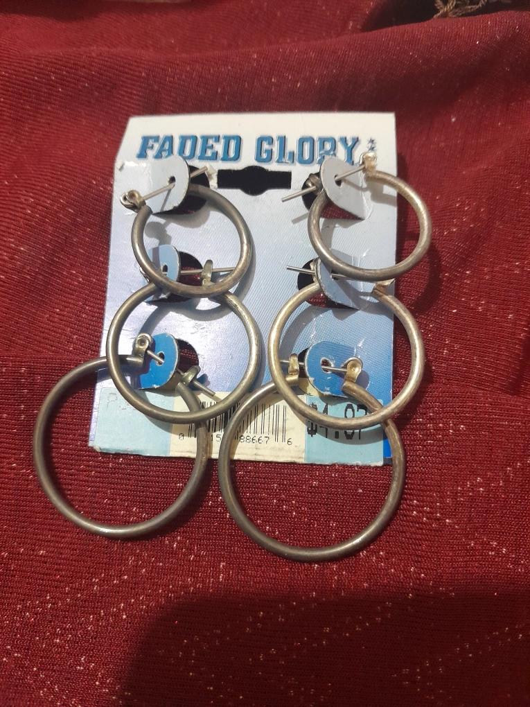 Selling a pair of Faded Glory silver tone hoop earrings. They are in new condition!