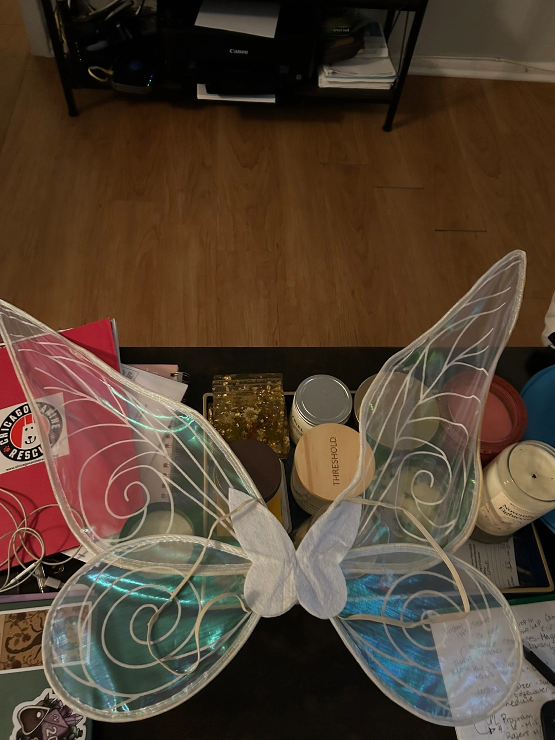 These fairy wings are so pretty! They have a lovely iridescent sheen that catches the light beautifully. Perfect for dress-up or costume parties