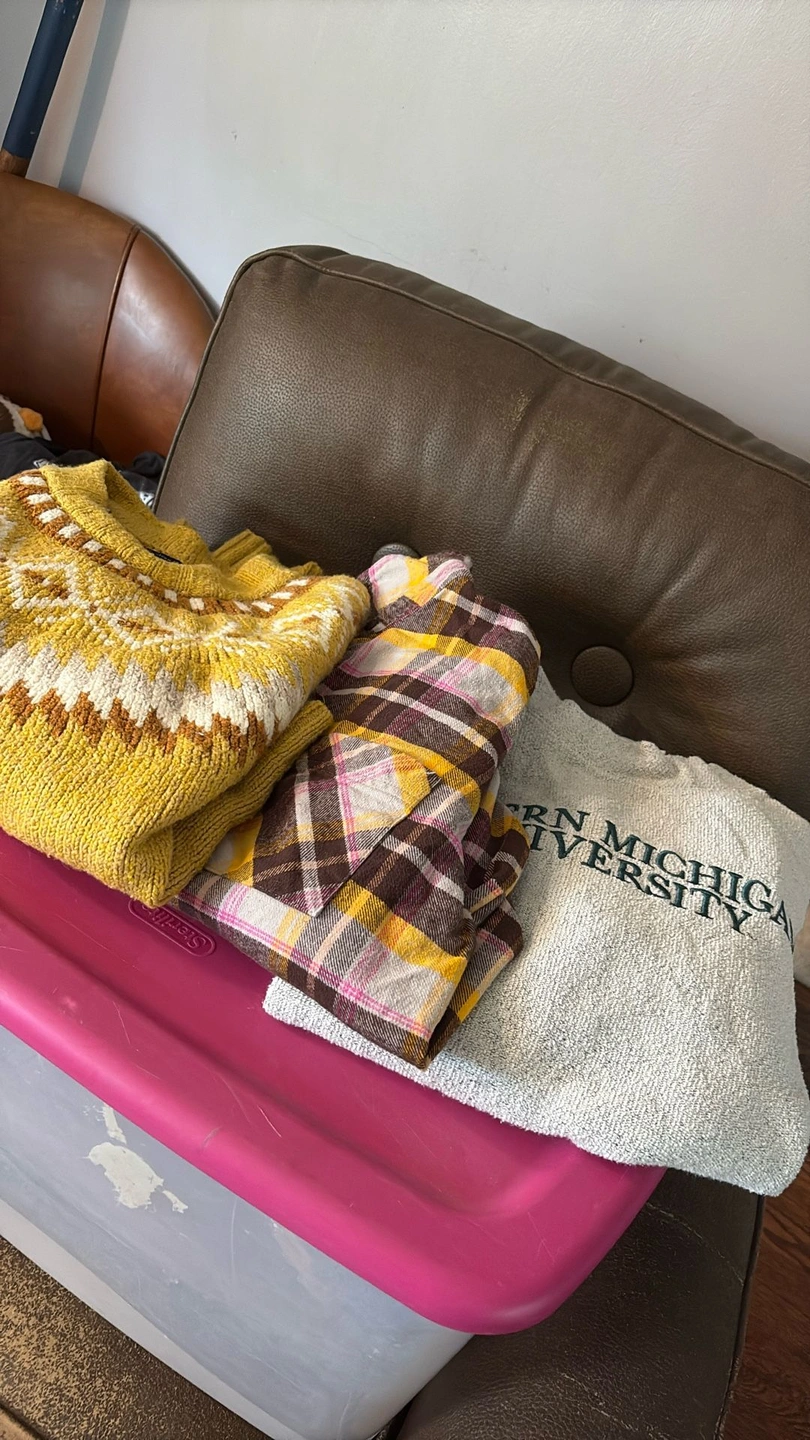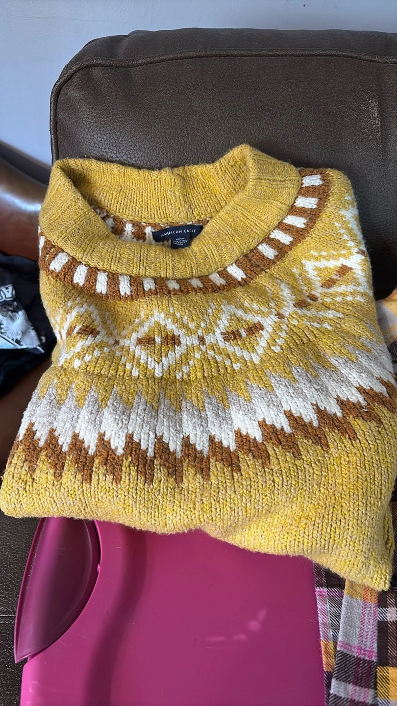 American eagles long sleeve sweater size medium, wild fable heavy weight flannel in size M and college oversized sweater in size L. Size Type: Juniors. Brand: American eagle. Let me know if you're interested!