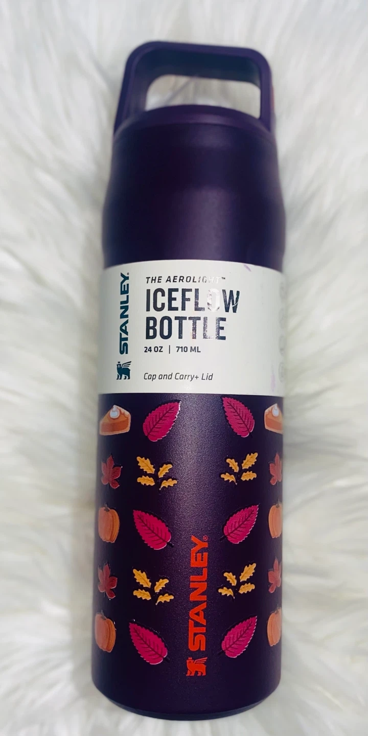 60Selling a new fall-themed Stanley Aerolight IceFlow bottle! It's 24oz (710 mL) and features a cap and carry lid. The bottle has a cute design with pumpkins, leaves, and pie slices! Perfect to keep your pumpkin latte cold and ready to go!