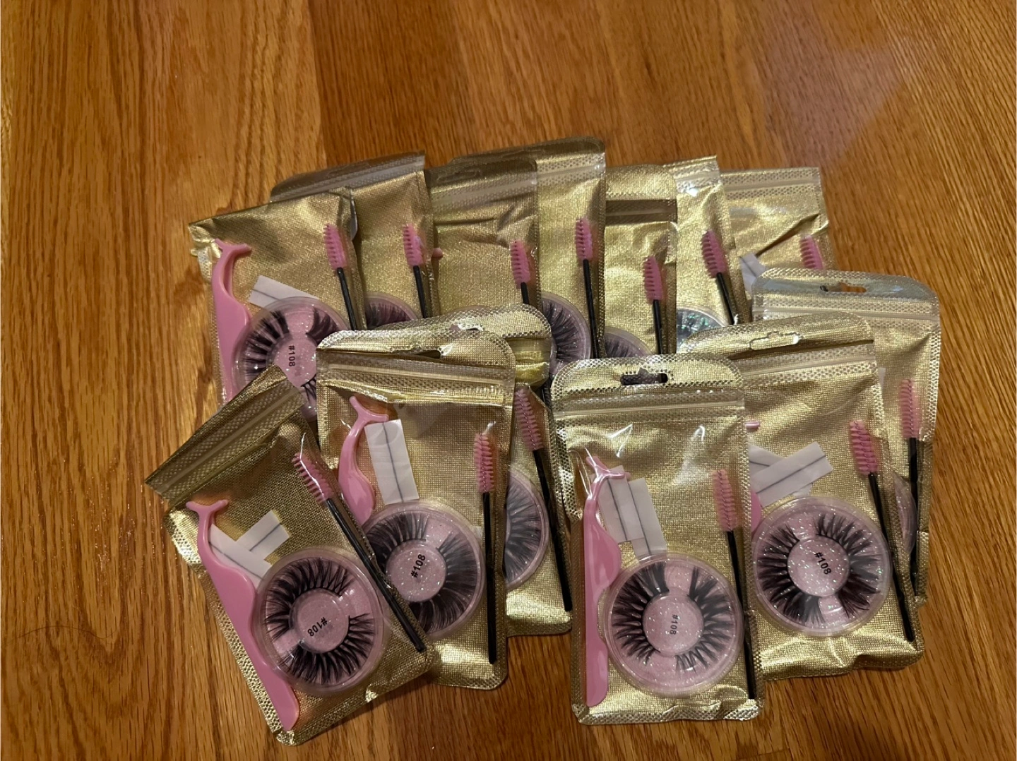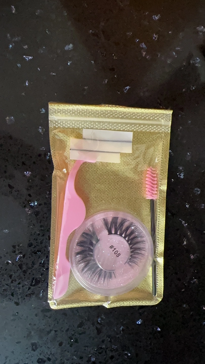 I'm selling these false eyelash sets, each including a pair of lashes, an applicator, and a brush for $1each. They come in individual gold-colored packages, perfect for on-the-go use