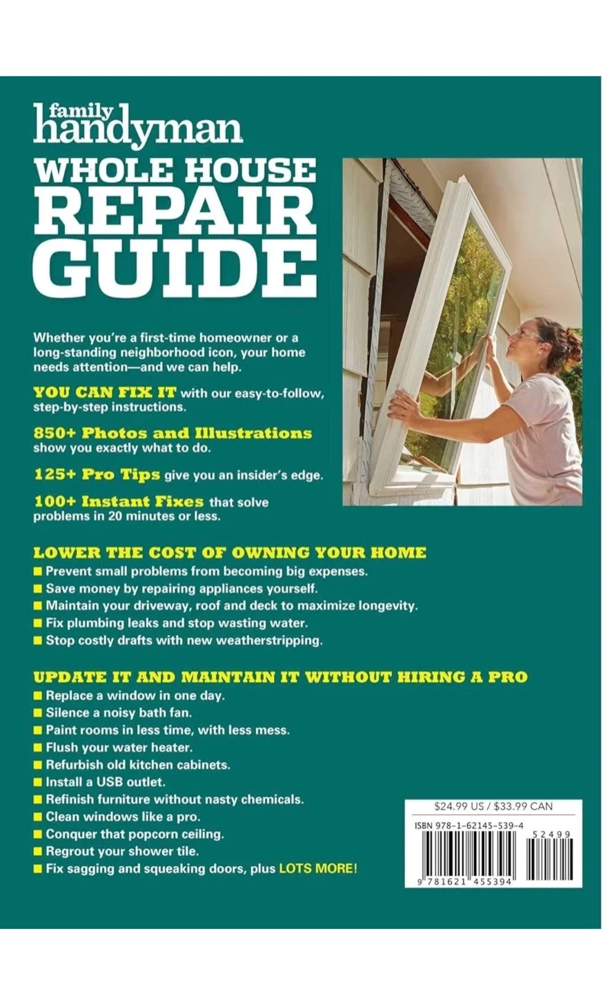 114I'm selling a copy of the Family Handyman Whole House Repair Guide! It's packed with 850+ photos and illustrations to show you exactly what to do. There are also 125+ Pro Tips to give you an insider's edge and 100+ Instant Fixes that solve problems in 20 minutes or less