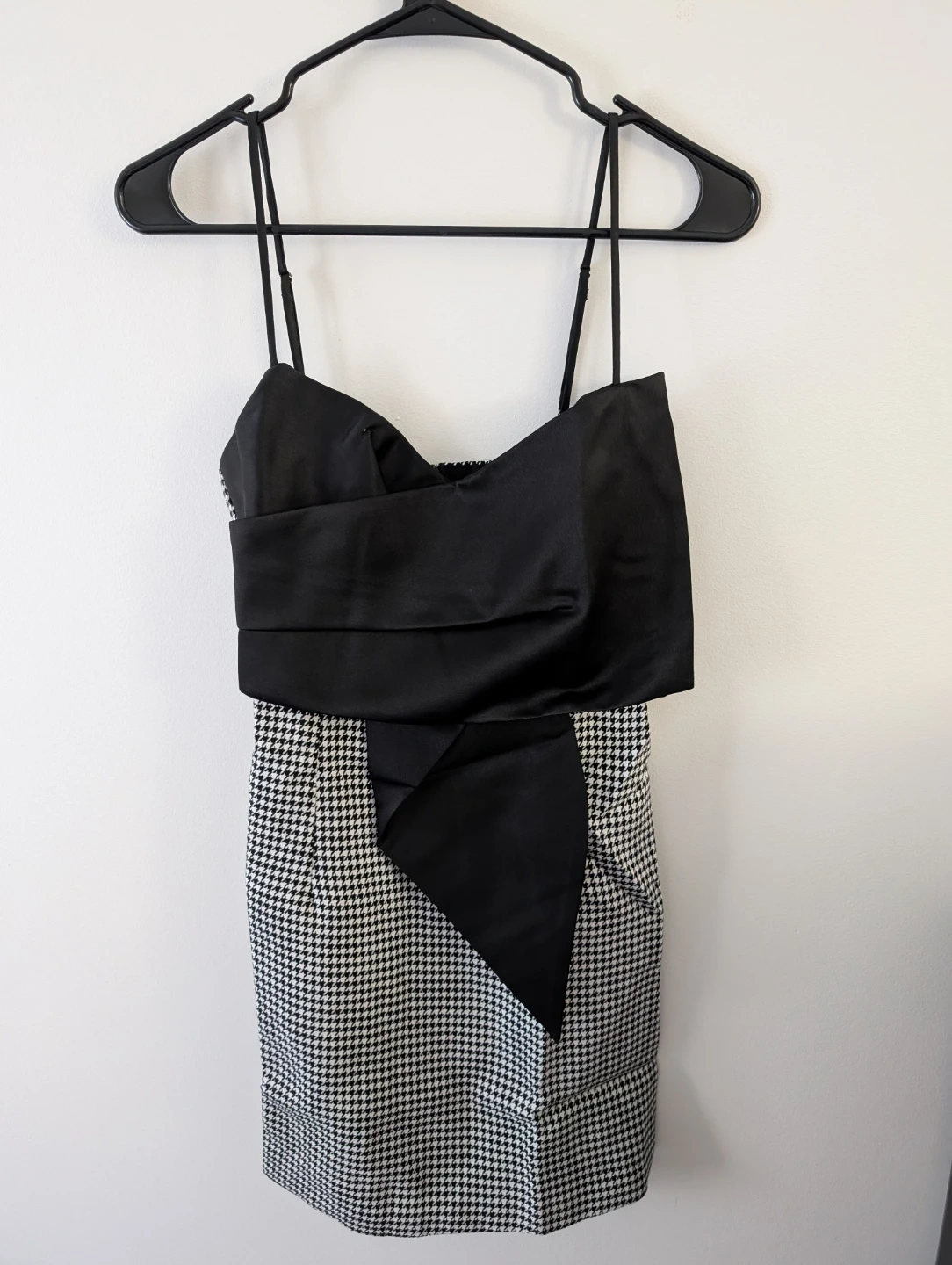 Cute houndstooth mini dress! It's in great condition and ready for a new owner. Perfect for a night out or a special occasion.