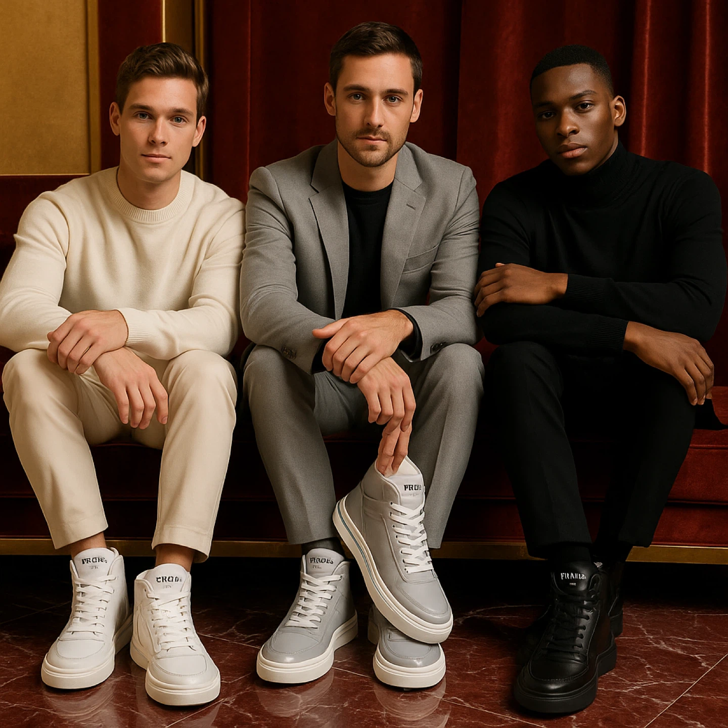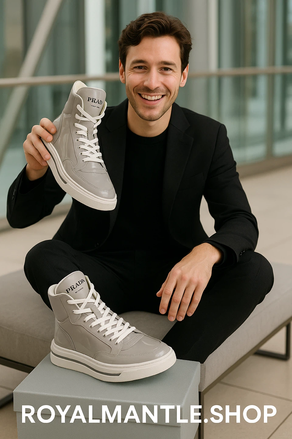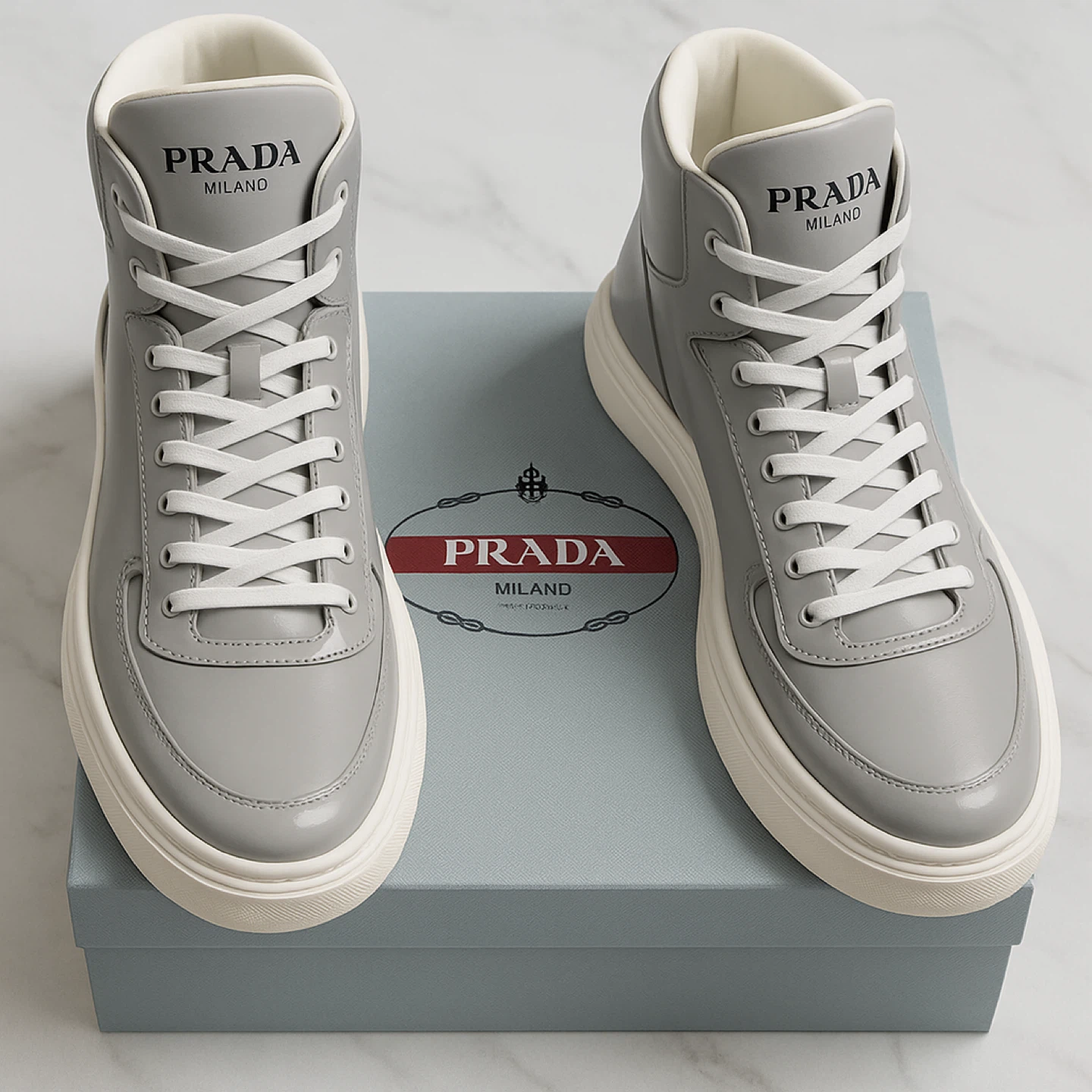 High-top design, soft cushioning, and signature Prada branding.