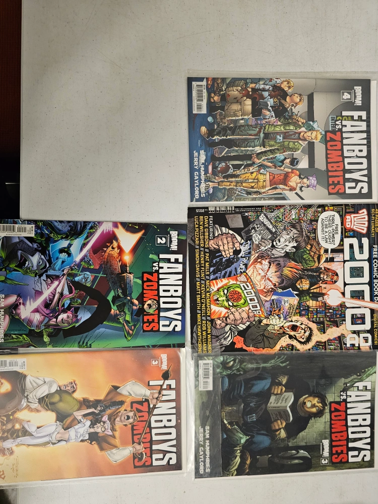 Selling a set of Fanboys vs Zombies comic books! Includes issues 2, 3, and 4, as well as a 2000 AD comic book