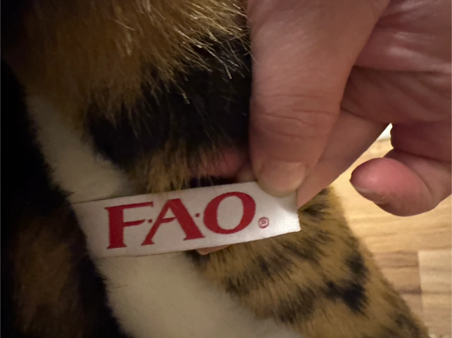 Selling a stuffed tiger from FAO Schwarz! It's in great condition and ready for a new home. Perfect for kids or collectors