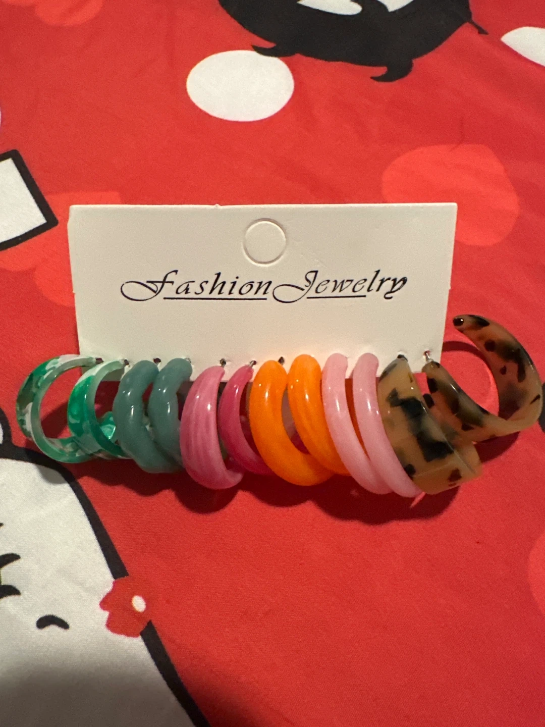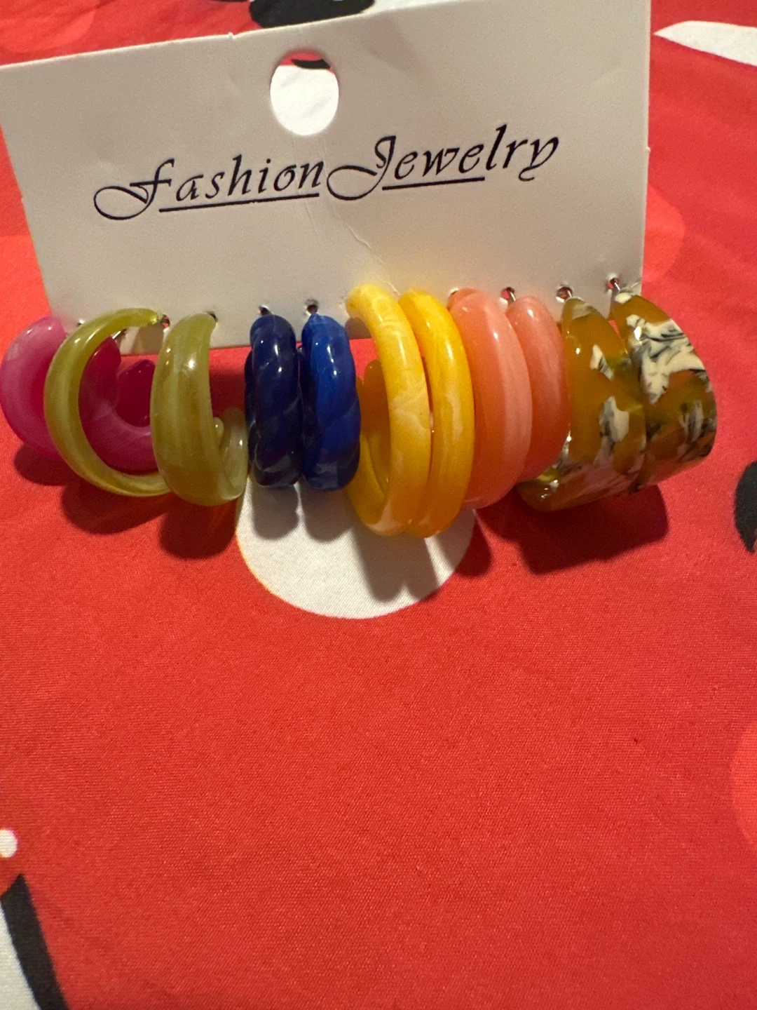 75Here are some fun hoop earrings! They come in a variety of colors. Perfect for adding a pop of color to any outfit