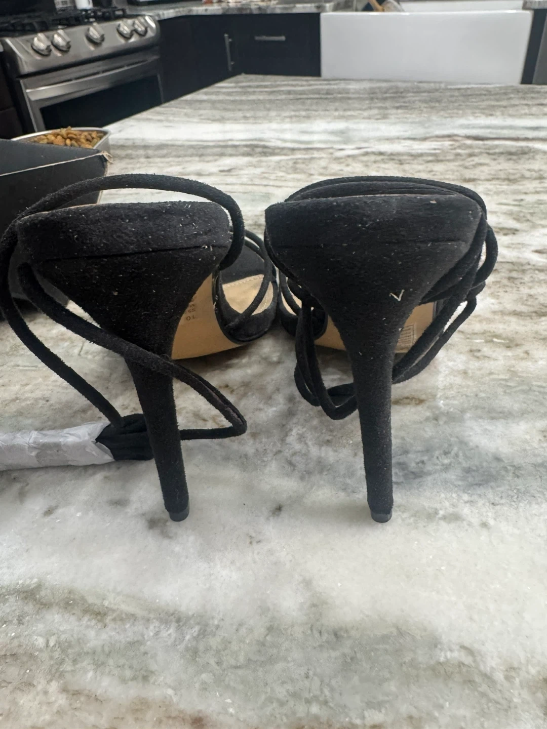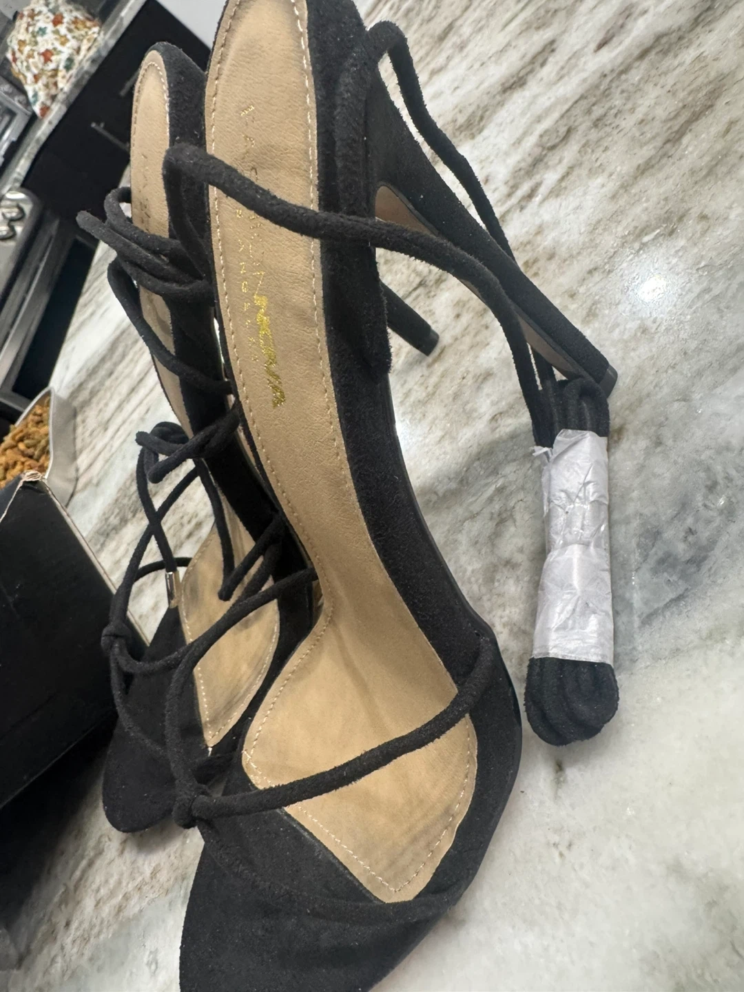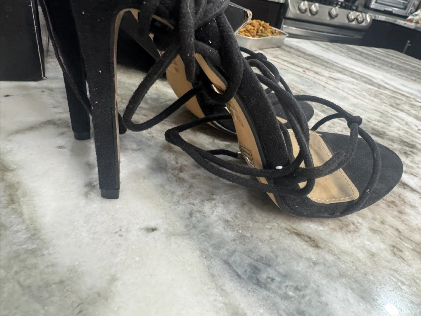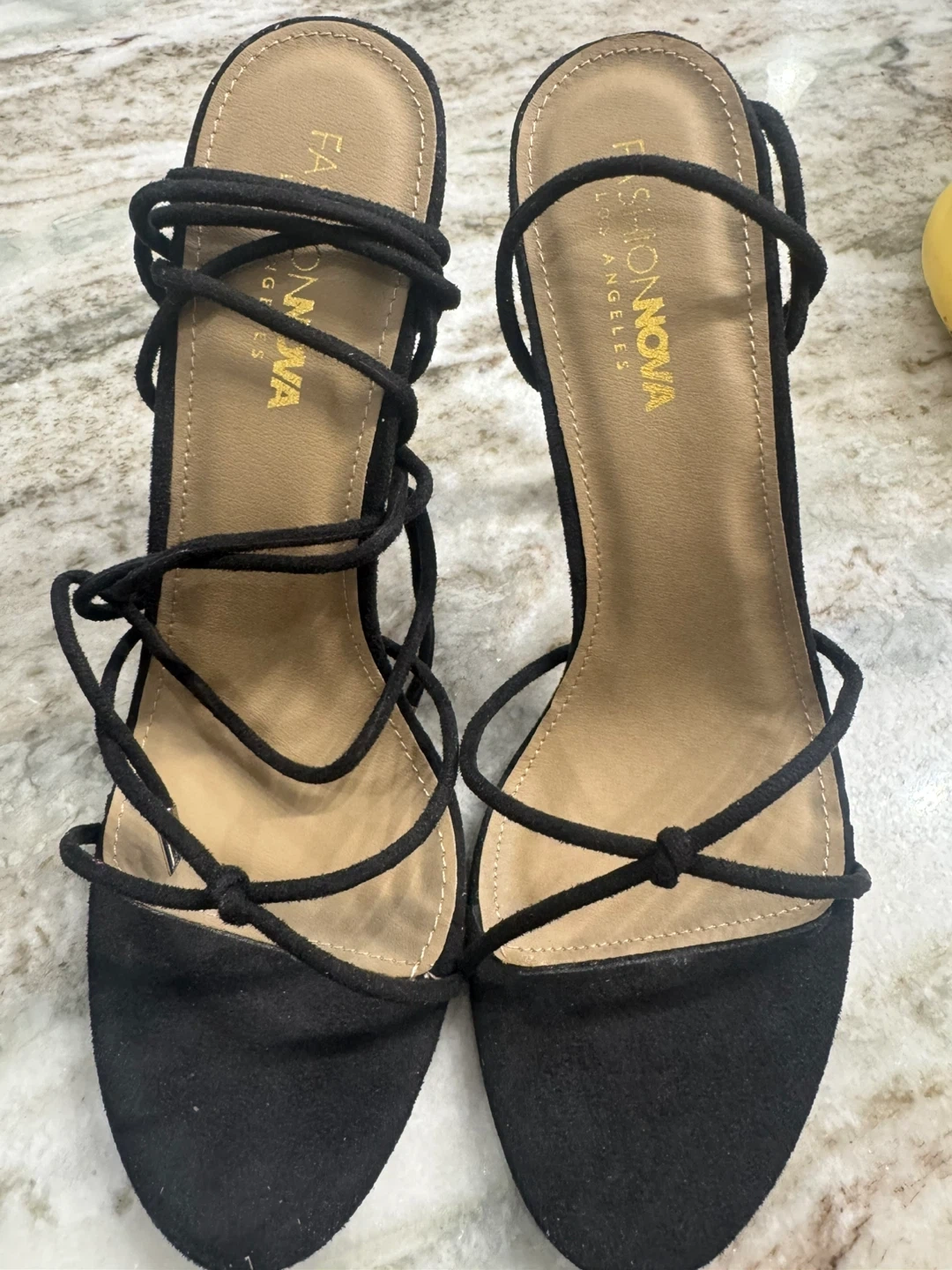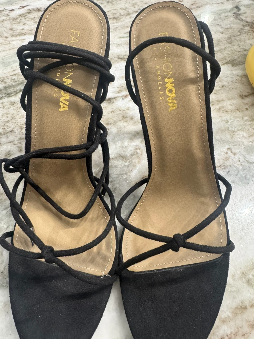 65Selling a pair of Fashion Nova black heels. They feature a strappy design and are in good condition!