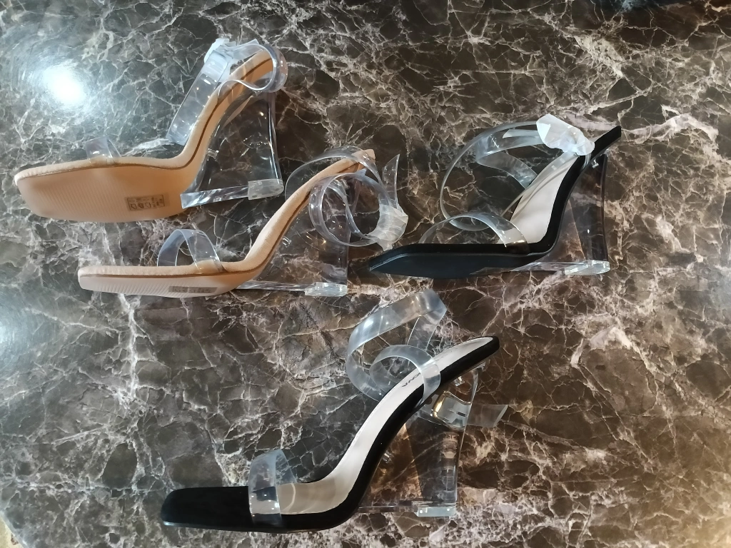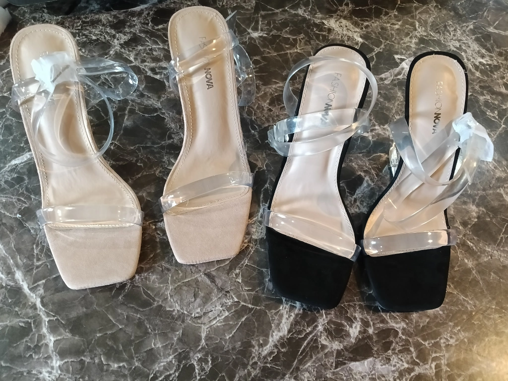 Selling a pair of Fashion Nova clear heels, They come in two colors nude and black, Size 9W $15 each pair