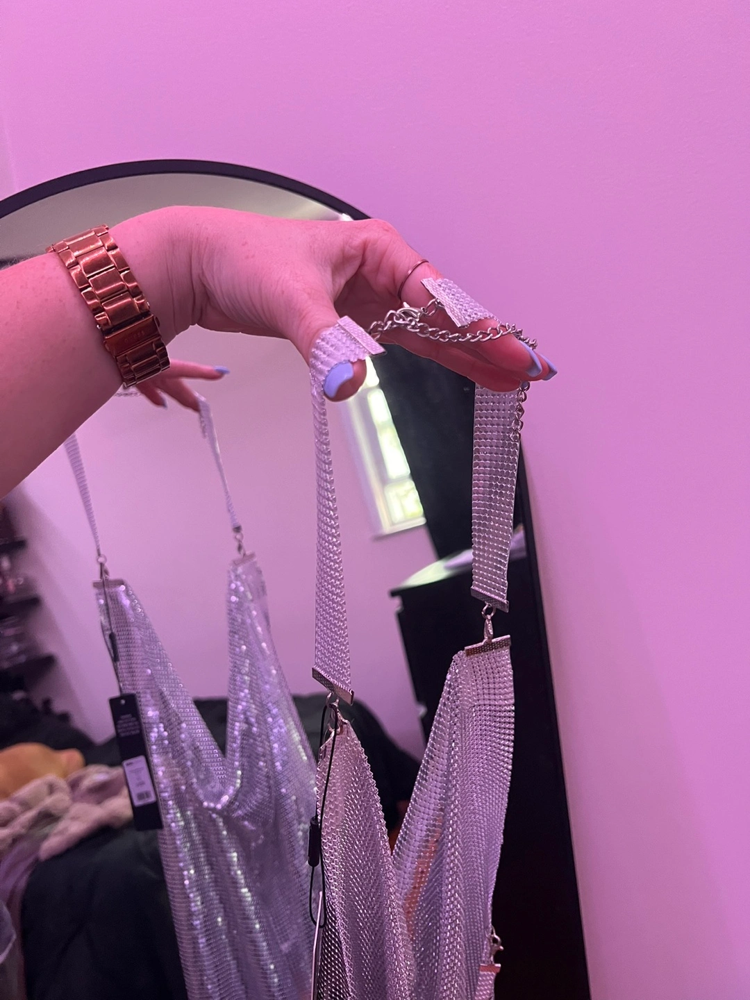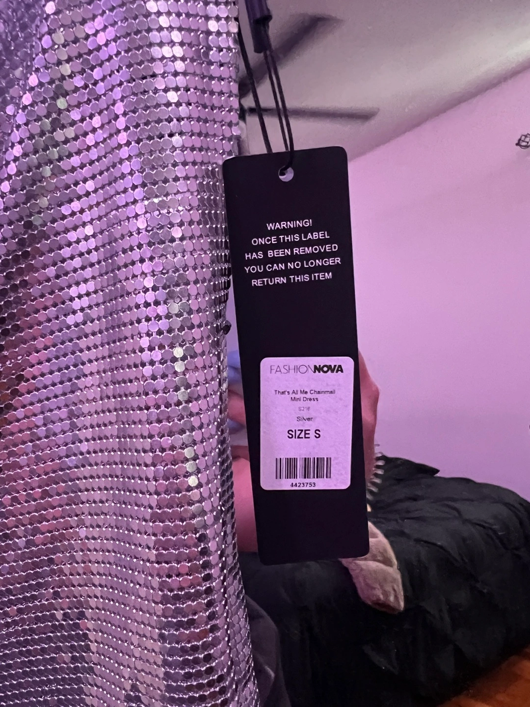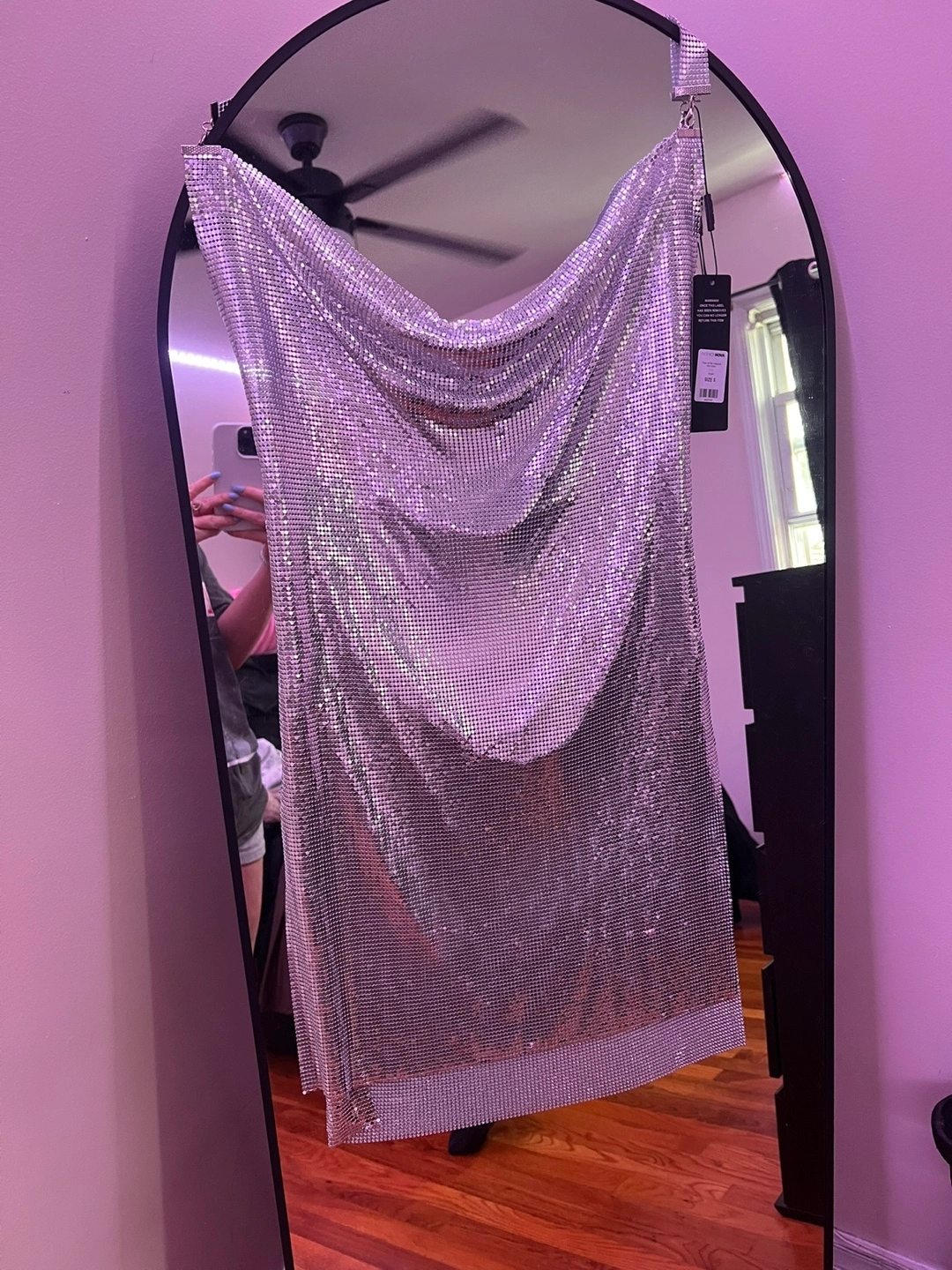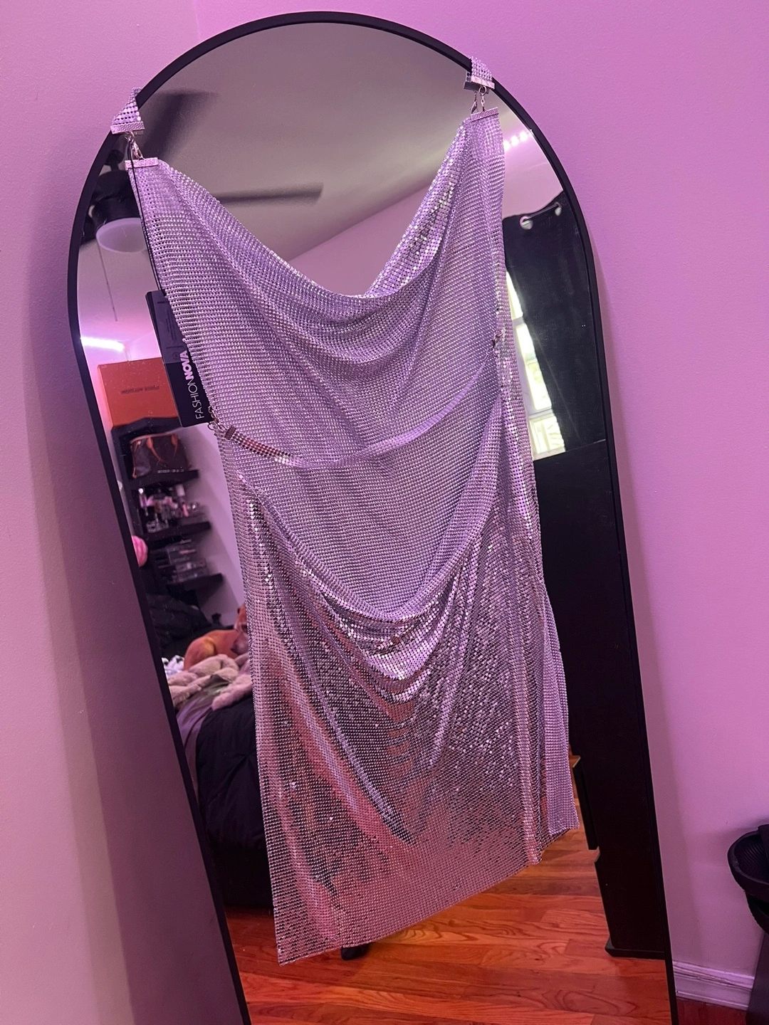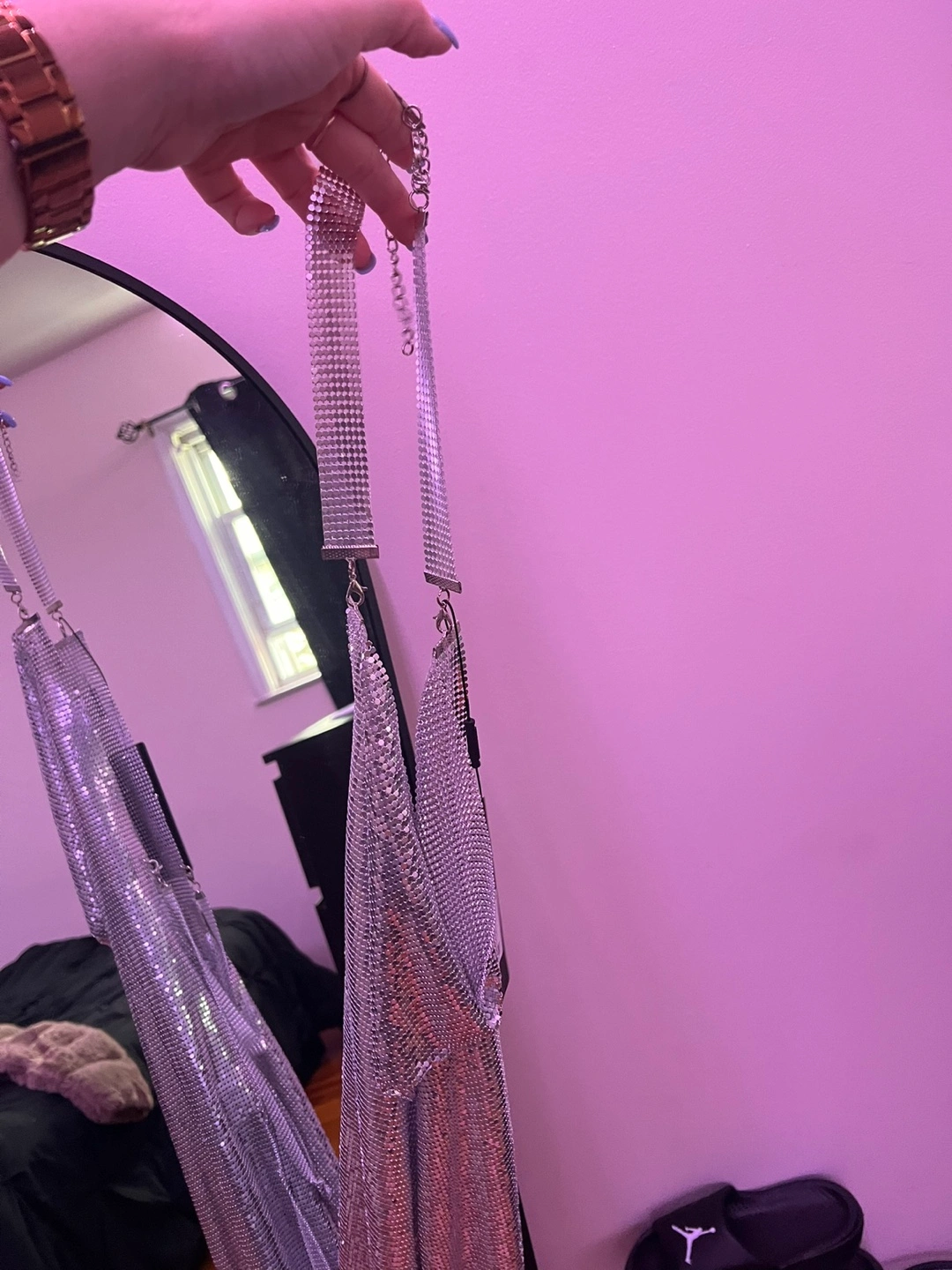 65Here's a Fashion Nova chainmail mini dress! It's silver and a size small