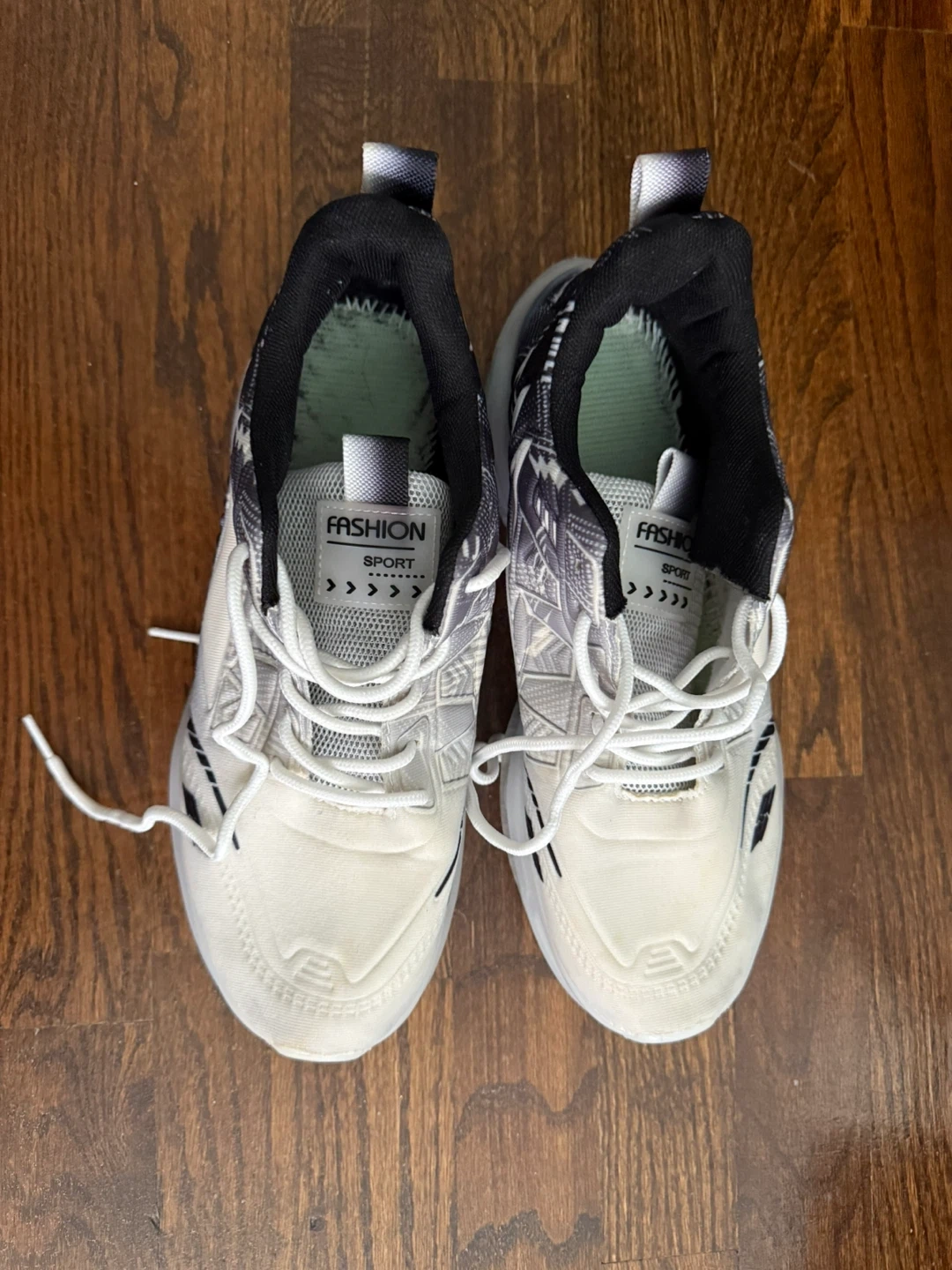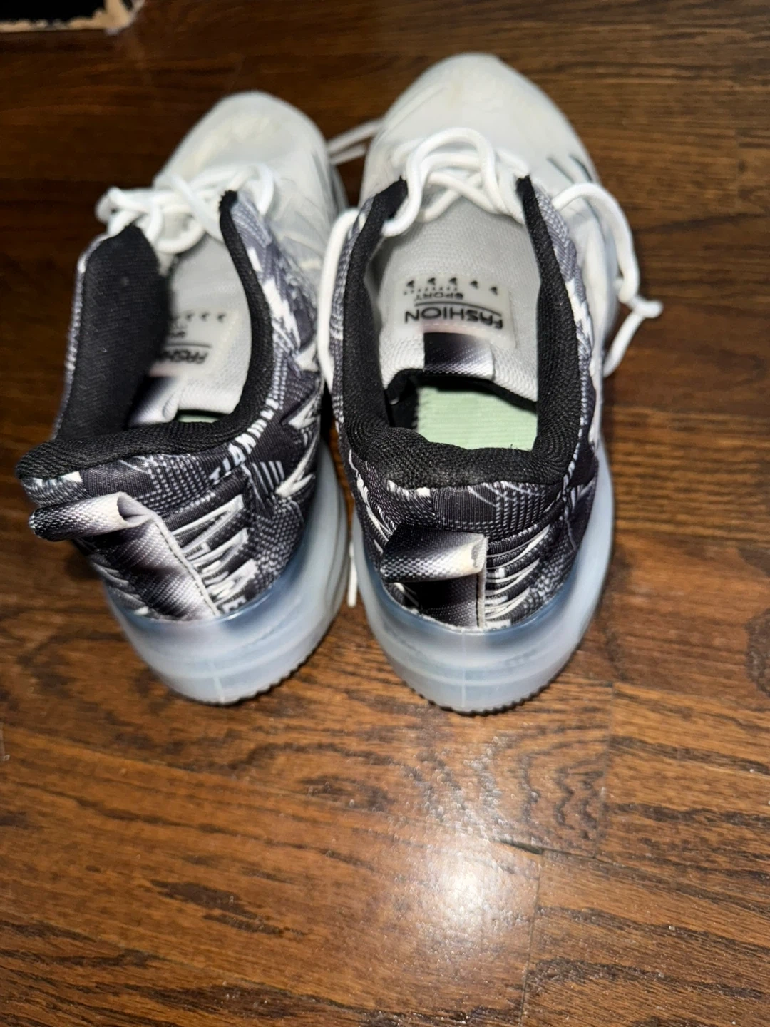 These are some white Fashion Sport sneakers! They have a cool design with black and white accents. Perfect for casual wear or light workouts size 8 it’s tight for me so selling .. Meet at Grand Avenue New Town sub station for M and R Train or near by