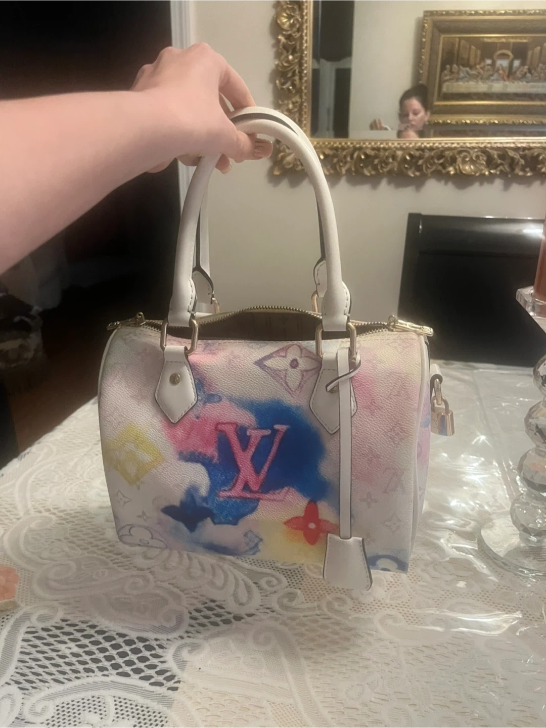 73Fashion watercolor Lv Speedy Shape Bag !!!! In Good Condition. Zipper closure. Pick up only from my location please.