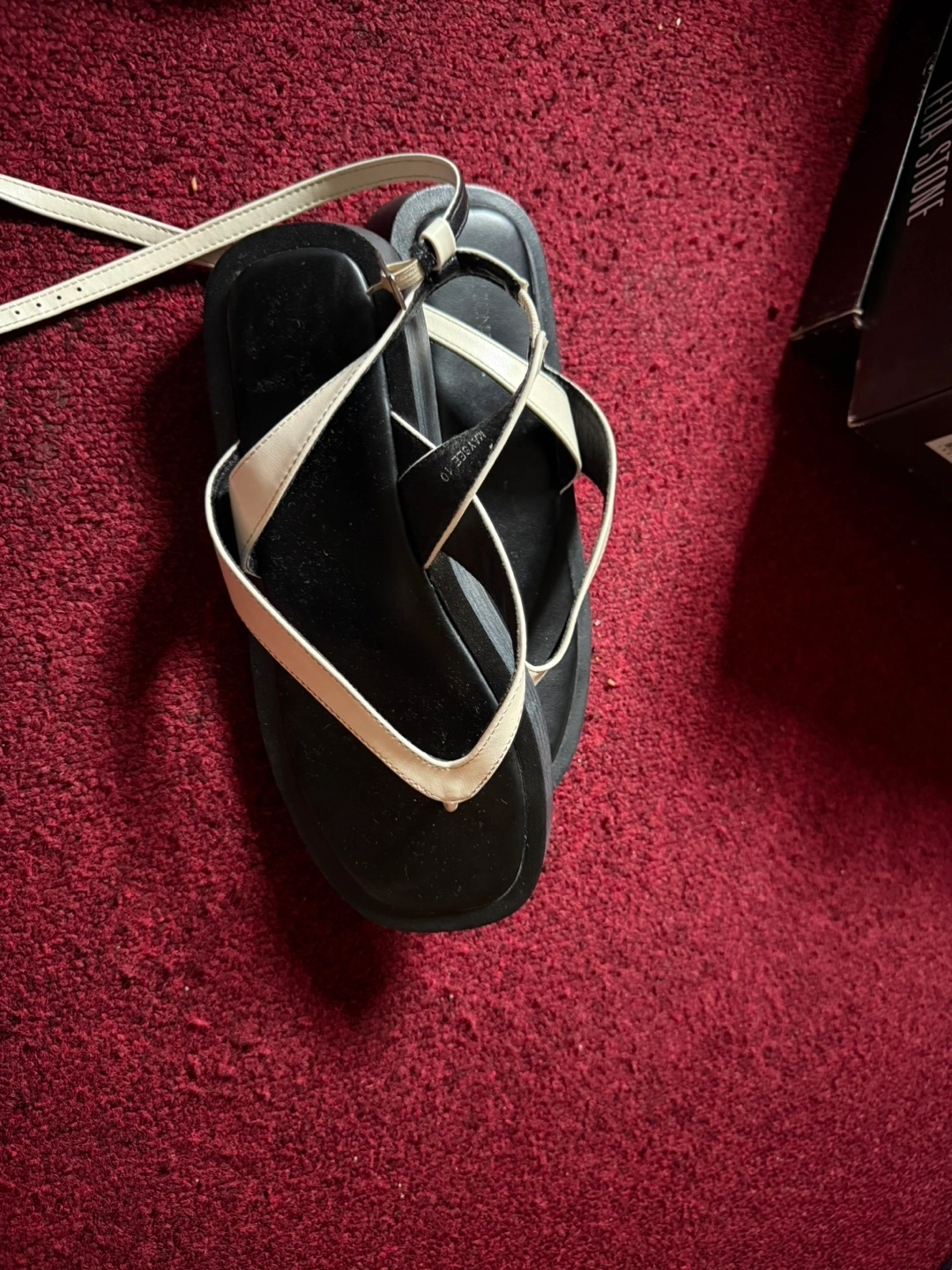 These are FashionNova women's sandals in a size 10! They are black and white. Very comfortable sandals for the summer!